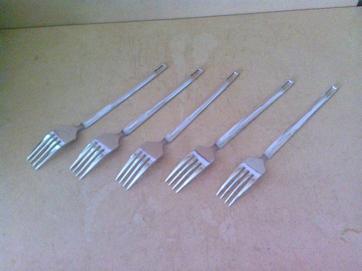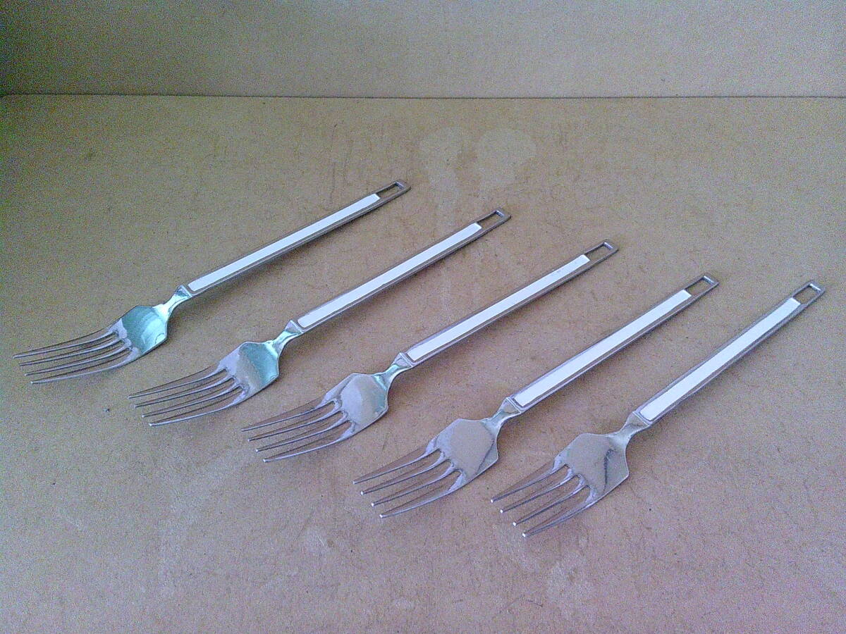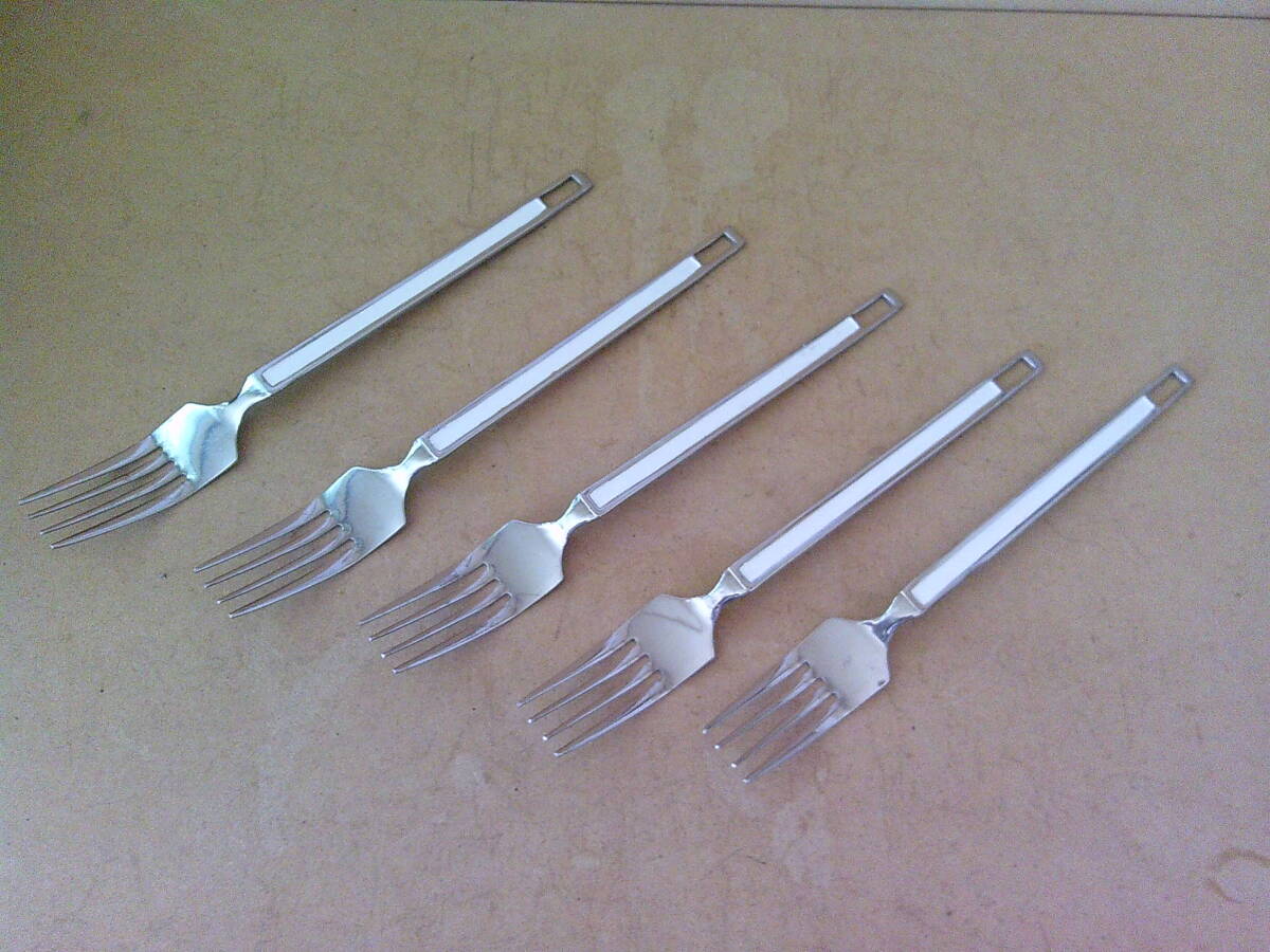 ■ く-108 フォーク 5本セット 未使用保管品 ステンレススチール製 ディナーフォーク ※約寸:最大)単品:長さ18cm 幅2.2cm 重さ20g