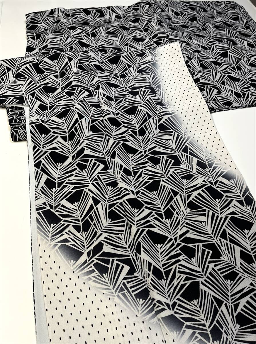 花とら●リサイクル着物 訪問着 美品 松 モノトーン 絹 大きなサイズ    240523