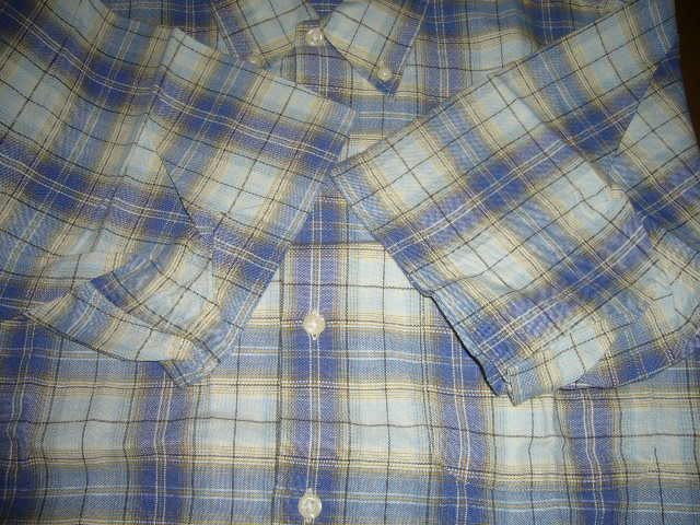 581-66♂:PERSON S sports  パーソンズスポーツ 半袖ボタンダウンシャツ BDシャツ size.M 色.水色×チェック ミャンマー製