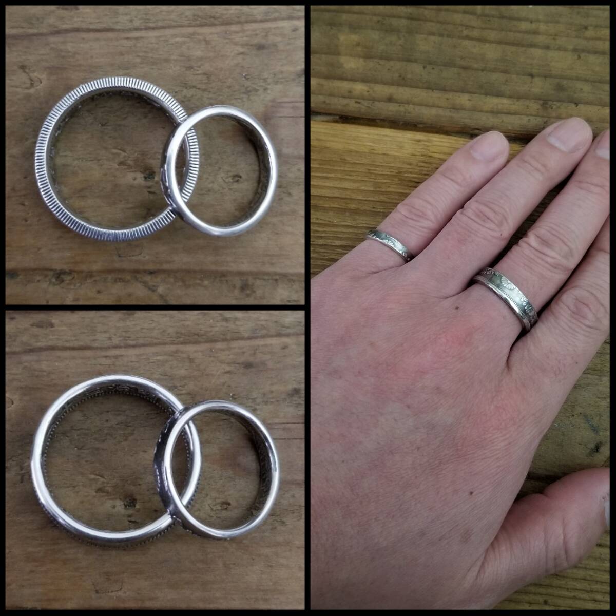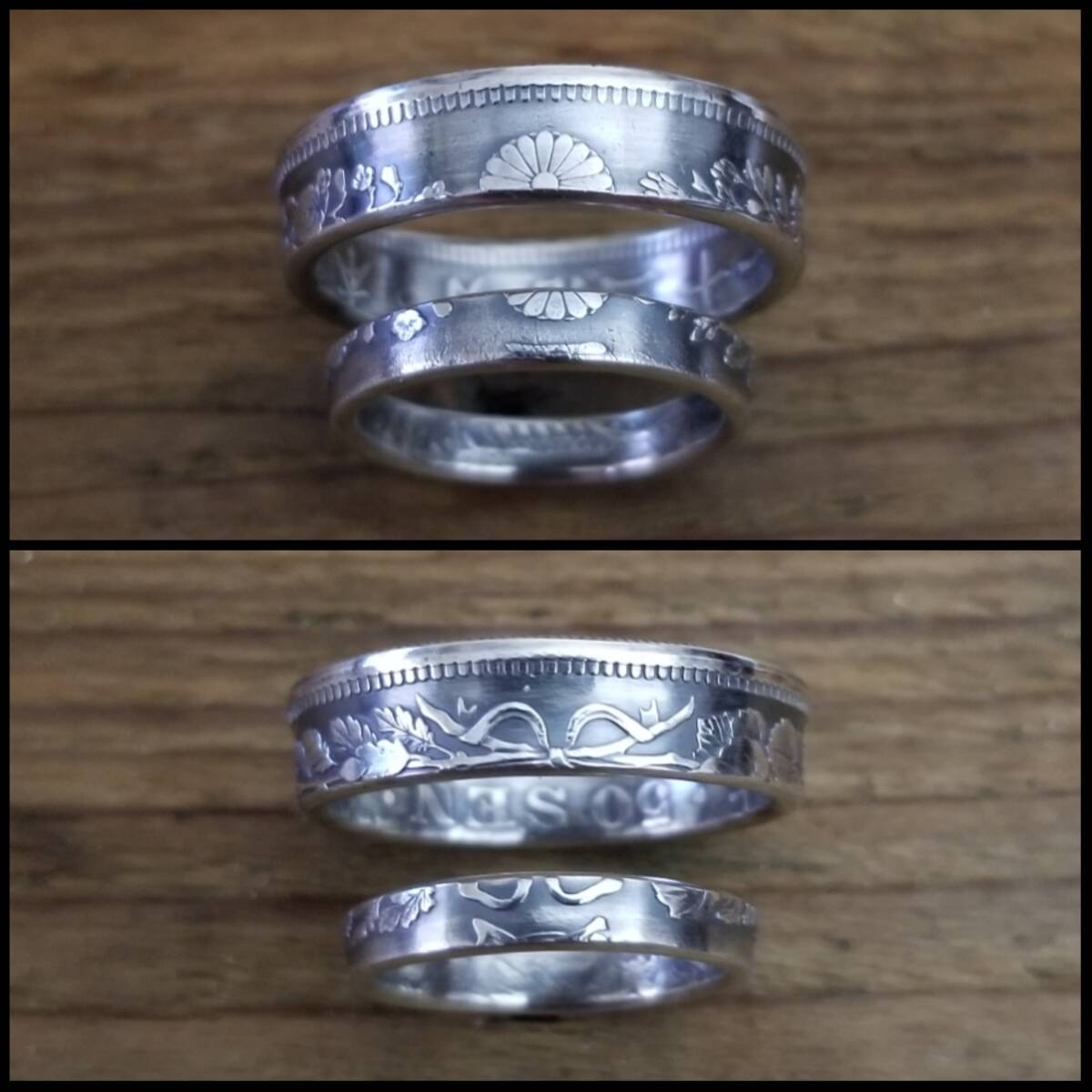 日本のアンティーク銀貨を加工して、1枚のコインから2つのコインリングを作成いたします。