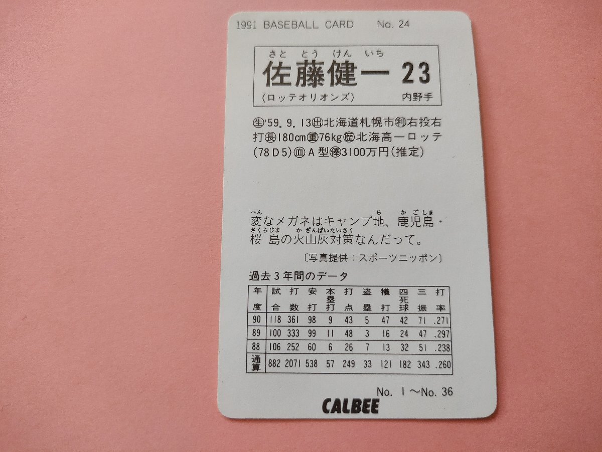 佐藤健一 ロッテオリオンズ '91プロ野球カード カルビー