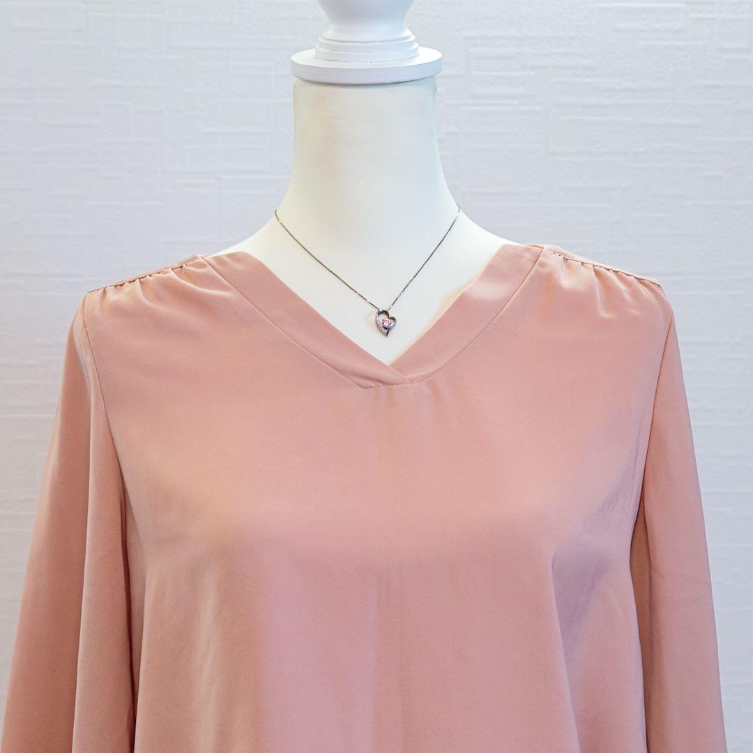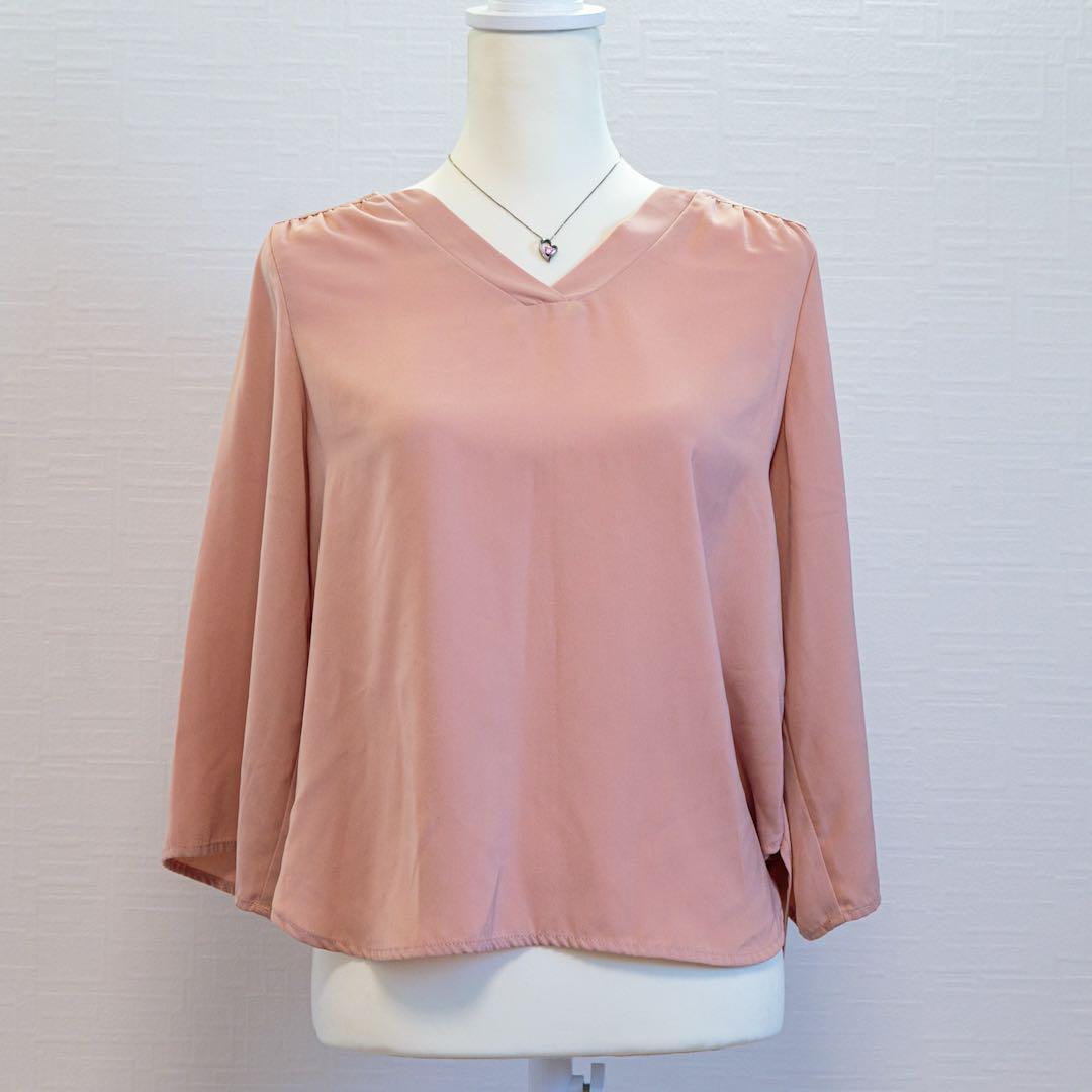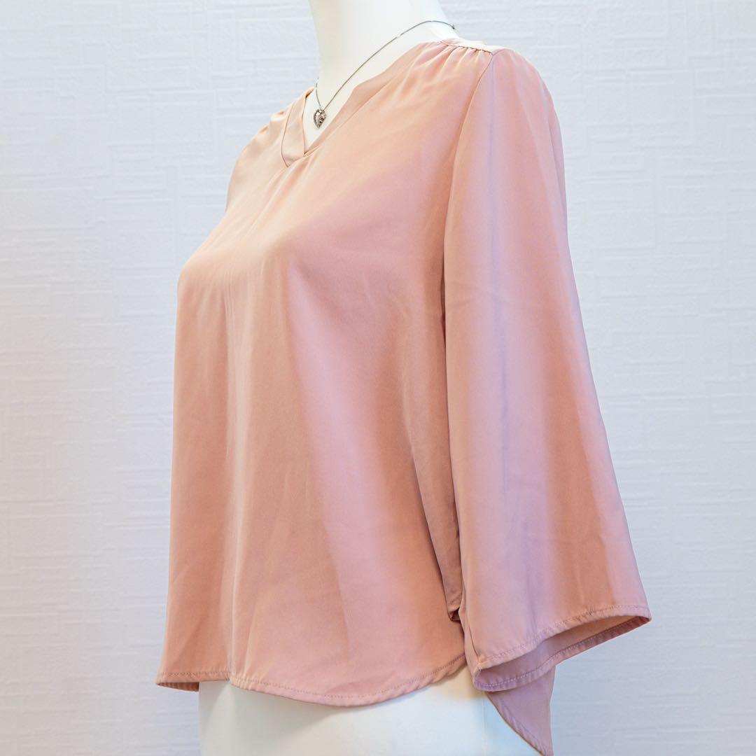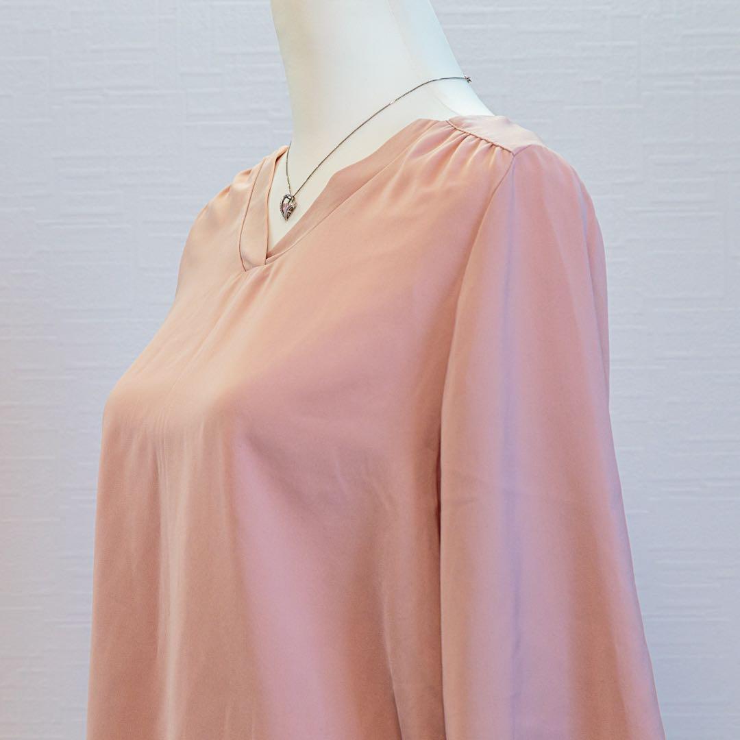 Vネックシフォンブラウス プルオーバートップス くすみピンク