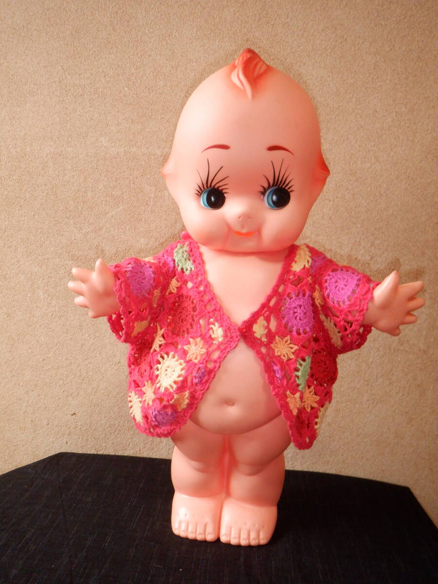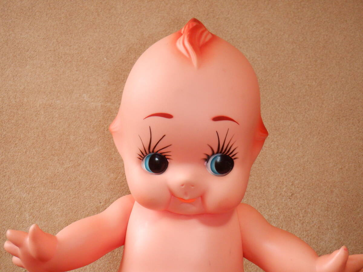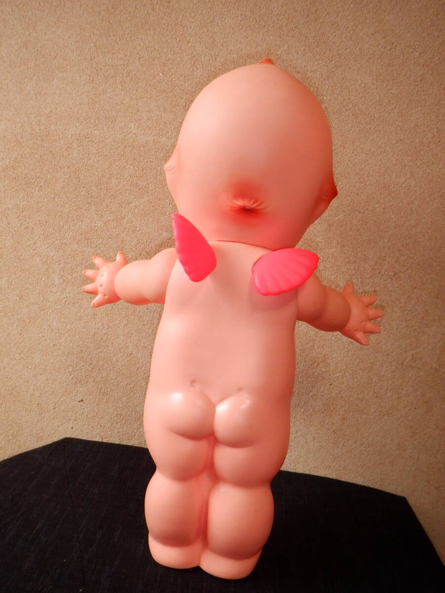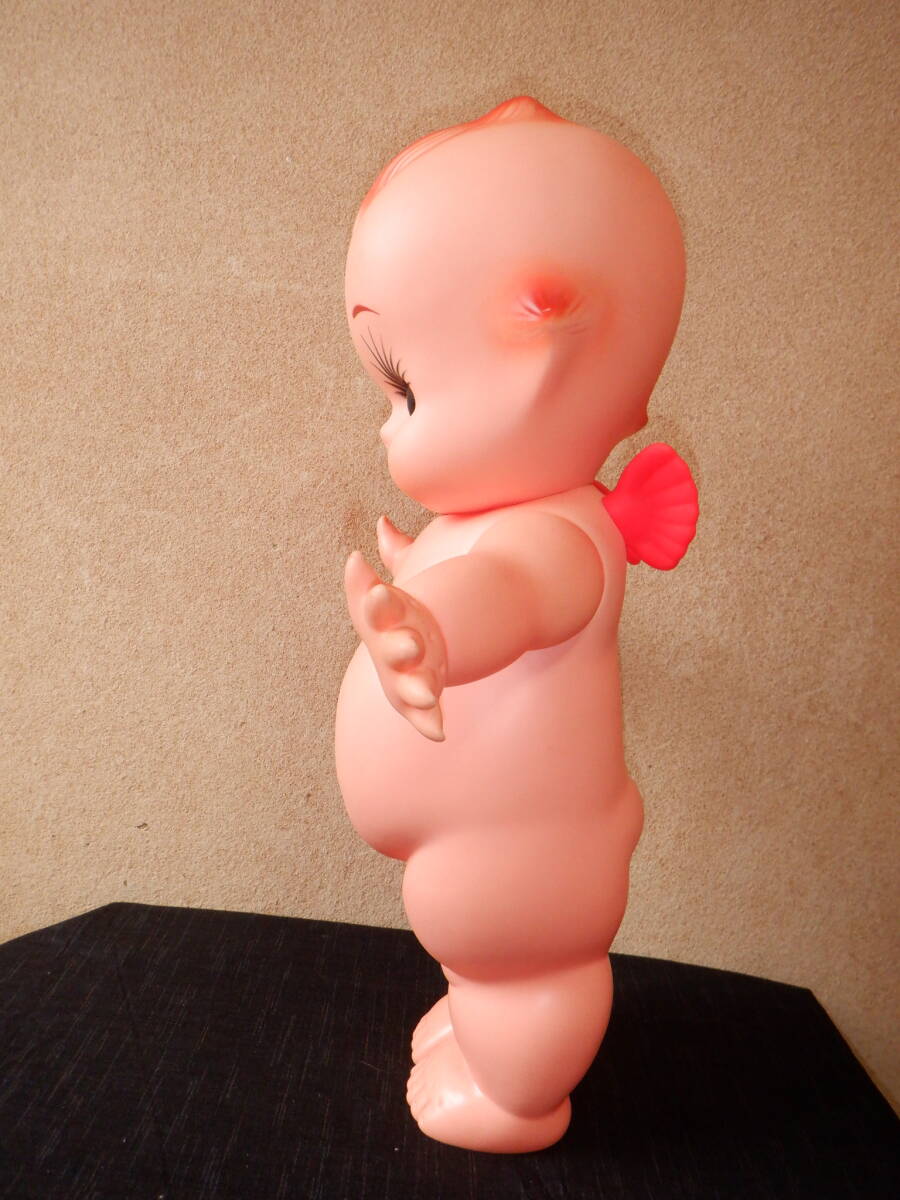 『昭和レトロ! 特大 キューピー人形~高さ55cm ソフビ 赤羽根~赤い手編みのカーディガン付き』になります。キューピー人形のサイズですが、高さ55cm、横幅36cm、奥行き20cmあります。採寸の方ですが、多少の誤差はお許し下さい。自宅にて長期保管品につき現状渡しとなります。長期保管品にご理解いただける方のみ入札をお願いいたします。ノークレームノーリターンでお願いいたします。神経質な方は、入札をご遠慮下さい。新規の方・悪い評価が多い方の入札は、こちらの判断で取り消すことがあります。