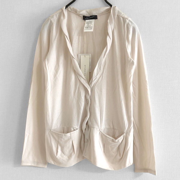 新品タグ付き・未使用【スタニングルアー】異素材コンビカーディガン ベージュ系 異素材切り替え カットソー素材 STUNNING LURE