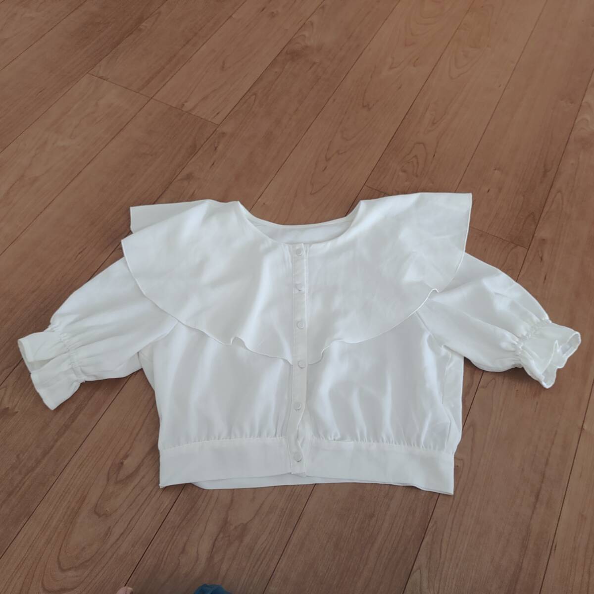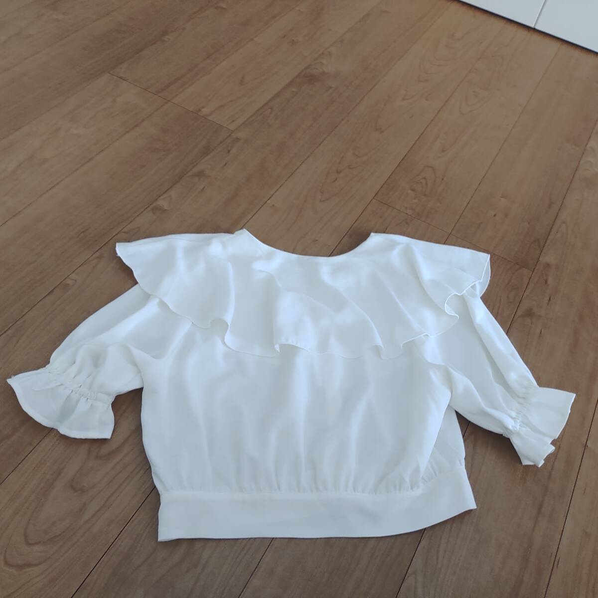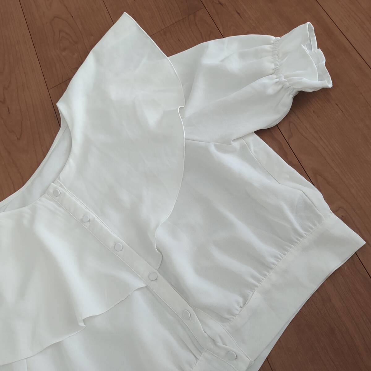 グレイル GRL フリル パフスリーブ 五分袖 ブラウス カットソー L ホワイト 白 です。