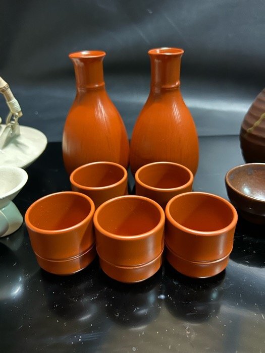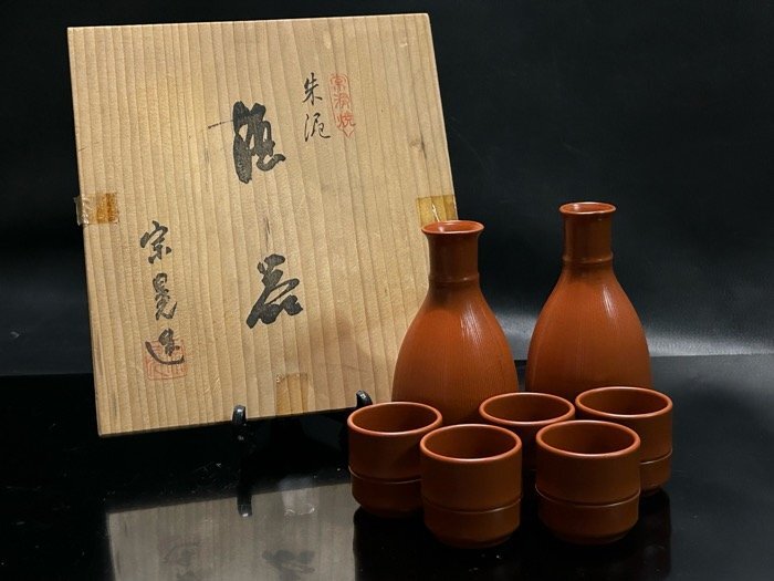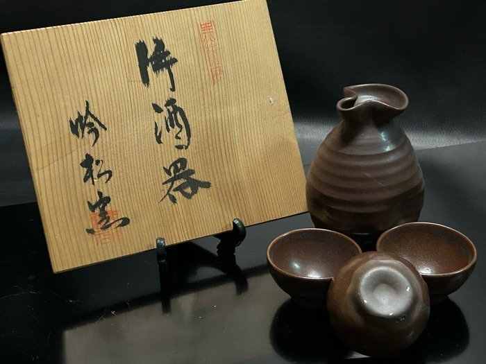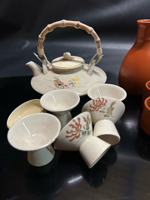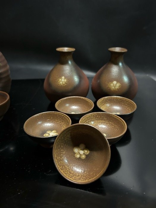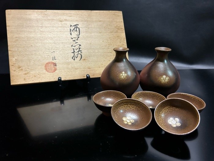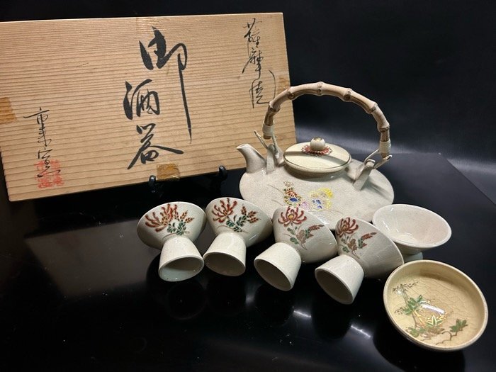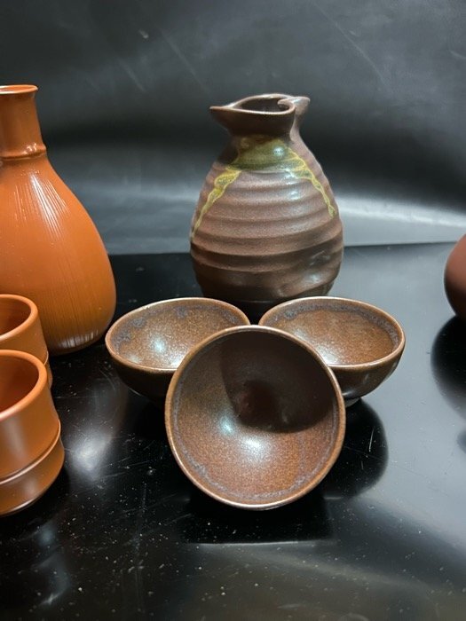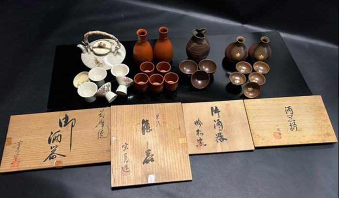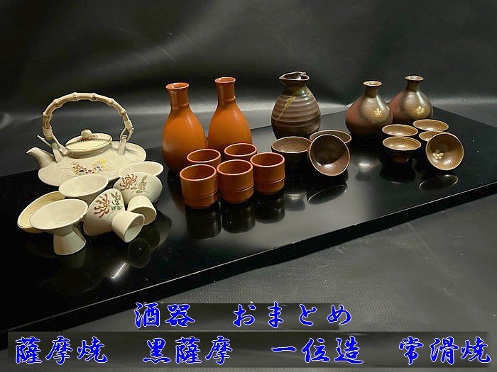◇在銘有 様々な趣の酒器 四組おまとめ【 薩摩焼 黒薩摩 一位造 常滑焼 】共箱入 ご店舗に、コレクションに P01069