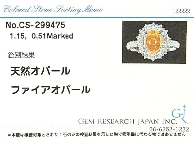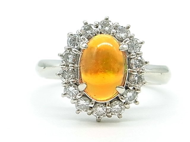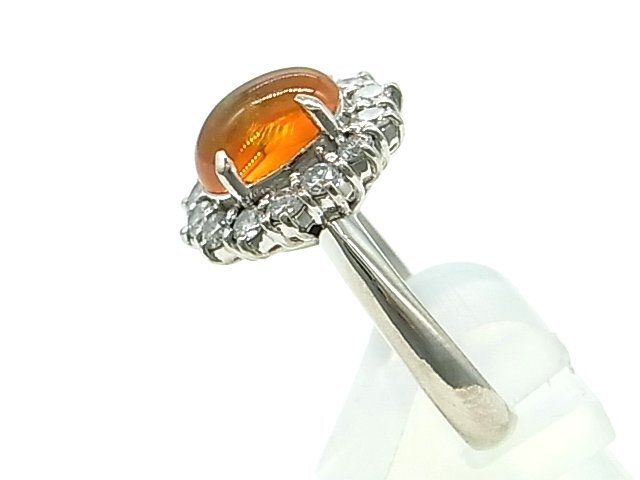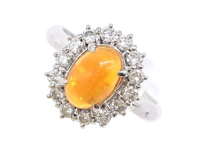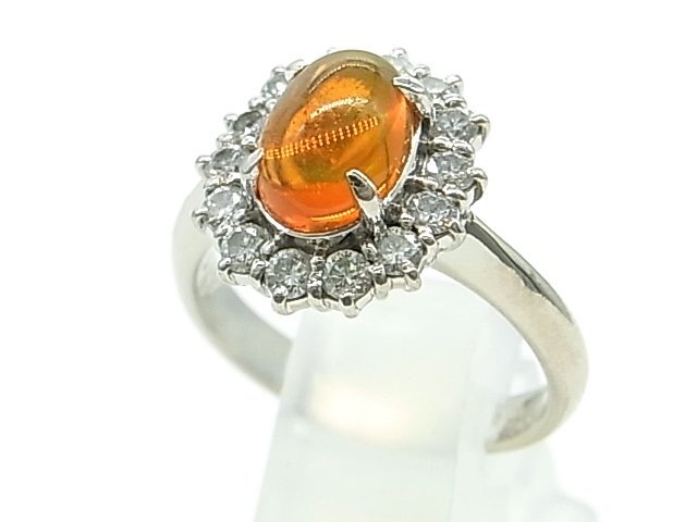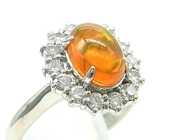 g16971 Pt900 ファイアオパール1.15ct D0.51ct リング USED 美品 6.5g #11 ソーティング付