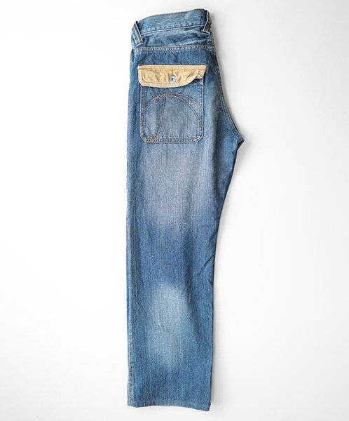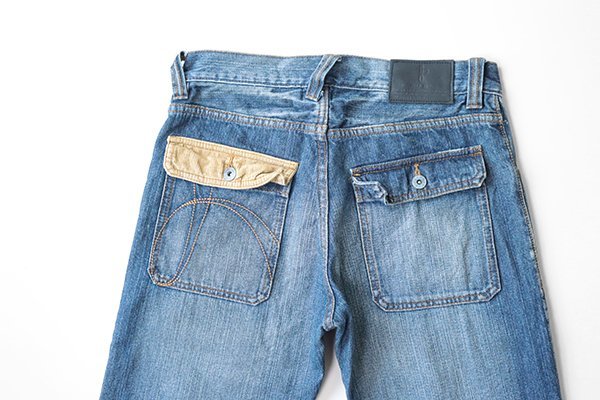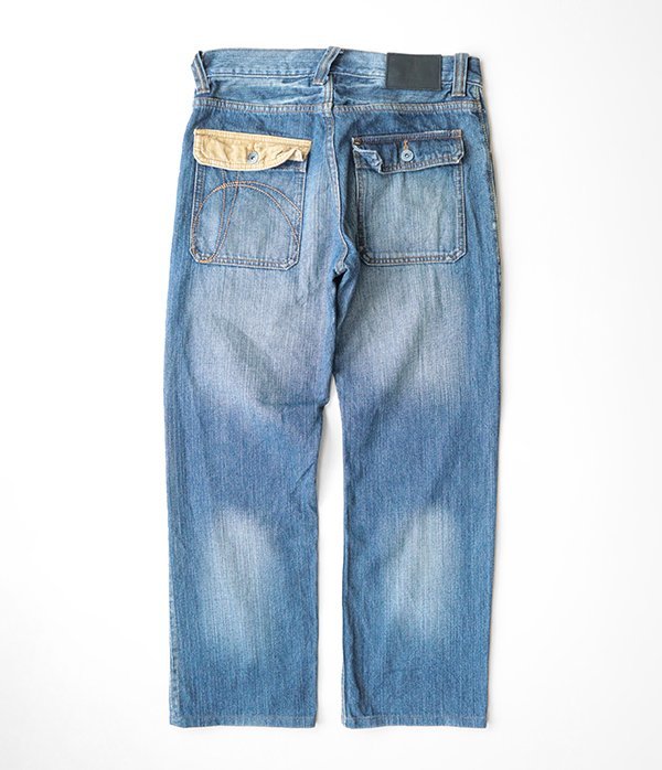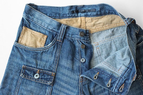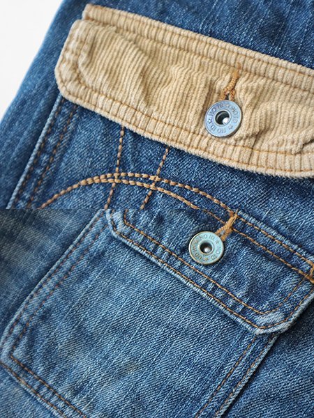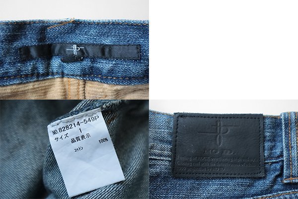 NO ID. ◆ デニム ブッシュパンツ インディゴ サイズ1 ヴィンテージ加工 コーデュロイ切替 ワークパンツ ジーンズ ノーアイディー ◆GG11