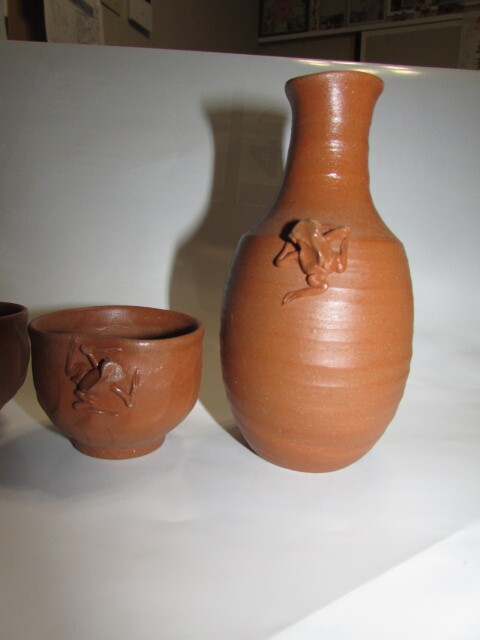 会津若松地方・・田島の手び練り万古焼の手び練りの酒器2セットです。