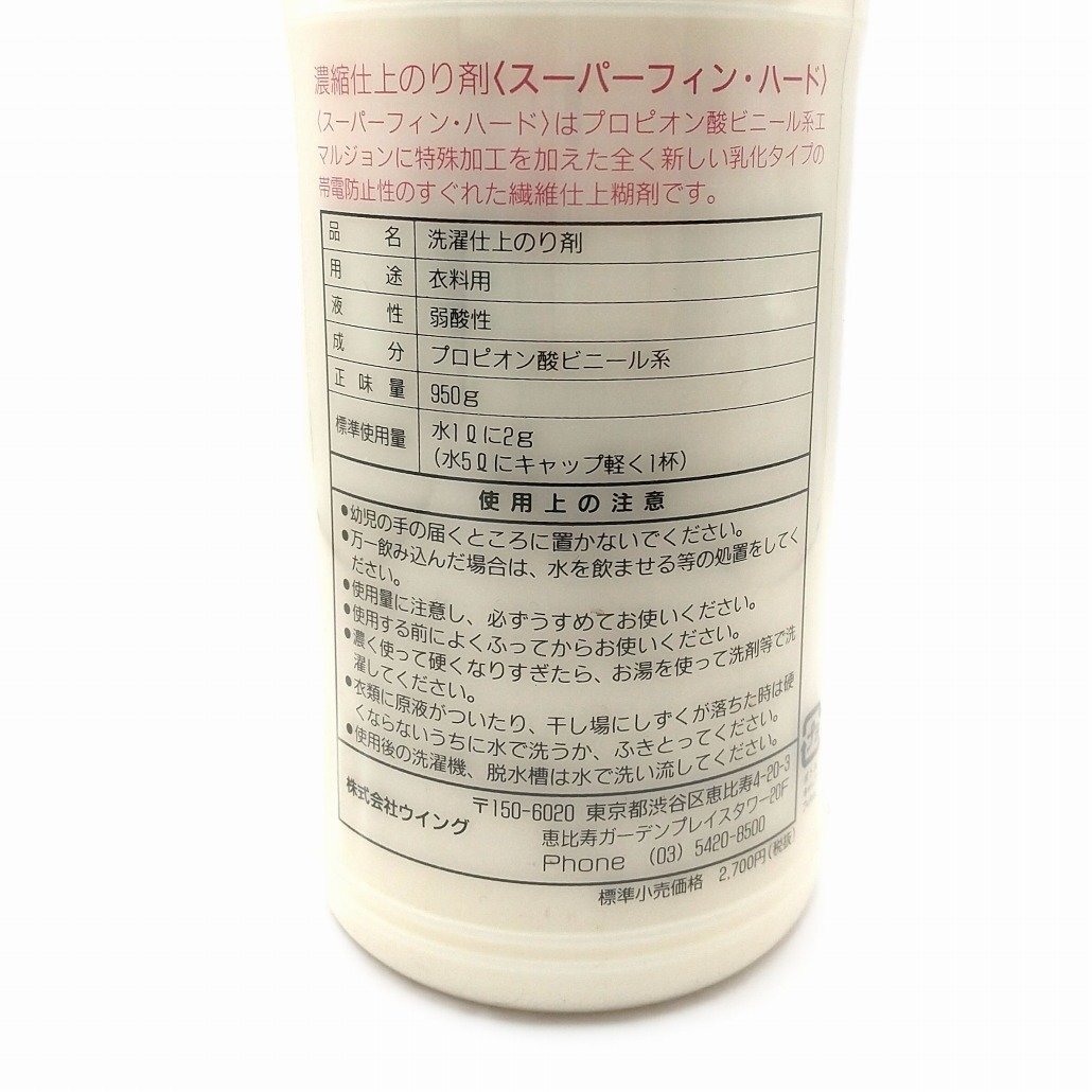 ウイング スーパーフィン・ハード 濃縮仕上のり剤 950g WING ♪ 弱酸性 同梱可 洗濯 訳あり 新品