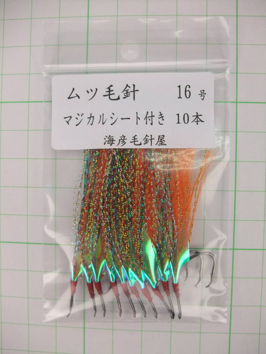 16OM ムツ16号毛針 オレンジフラッシャー マジカルシート付き 10本セット