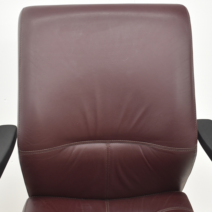 美しい造形と確かな加工技術で定評のある、キール・ハウワー社の製品です。木・革加工で世界トップレベルを誇るカナダからの輸入チェア。伝統的なボストンのゆりかごをイメージしたデザインです。背座はクッション製の高いパイプフレームと、異なる角度で傾斜するシンクロ機構を採用。しかも、フリーと任意ストップの2つの背座傾斜が選択できます。高級皮革とボリューム感あるフォルムは、従来の役員用チェアにはない高級感を演出します。