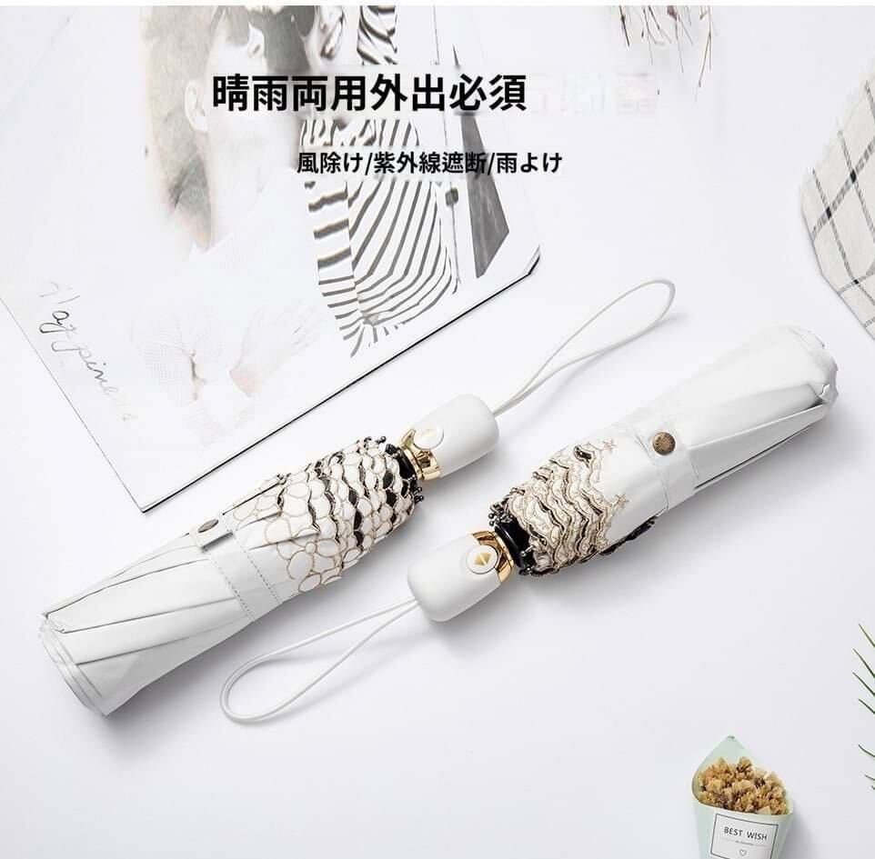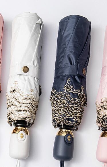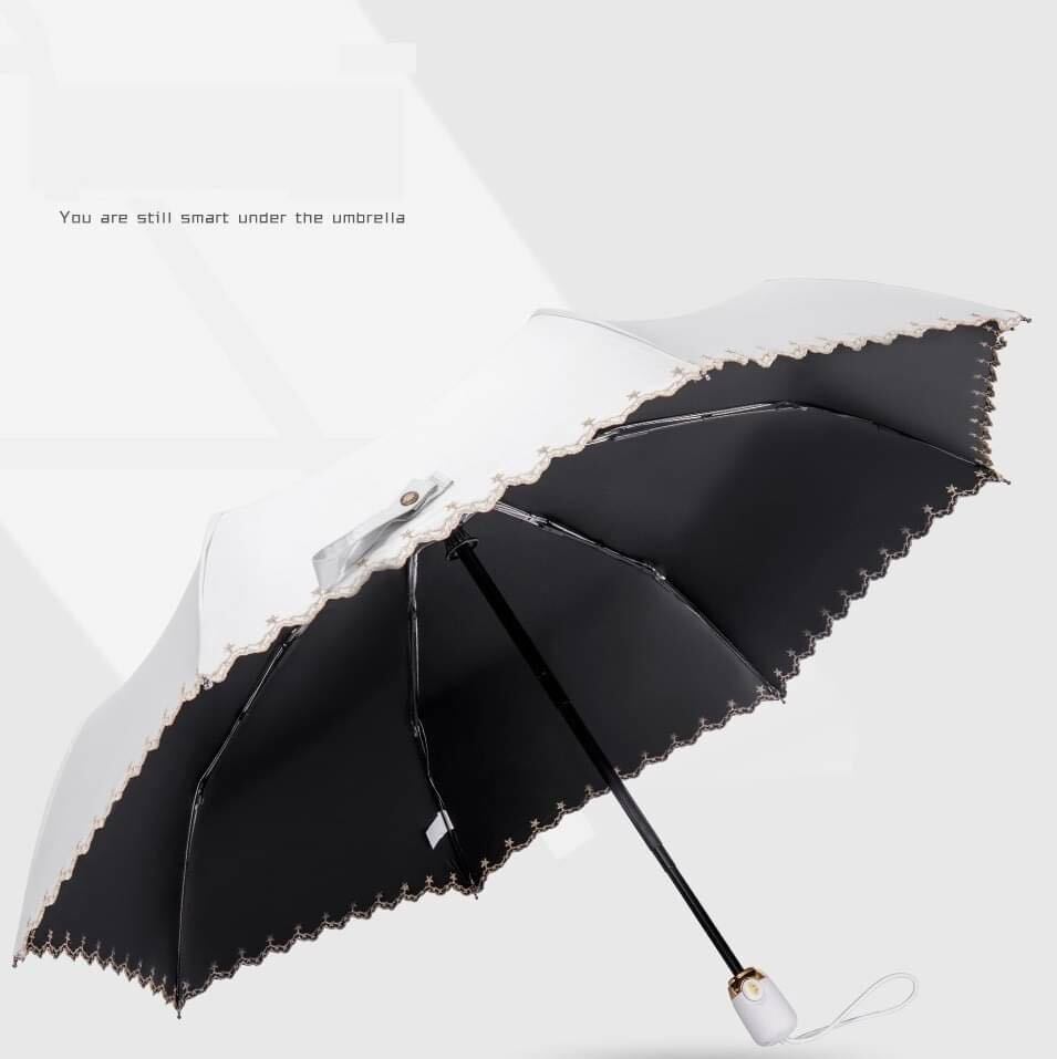 さまざまなスタイルに合わせやすいな上品な裾星刺繍 晴雨兼用折りたたみ傘です♪