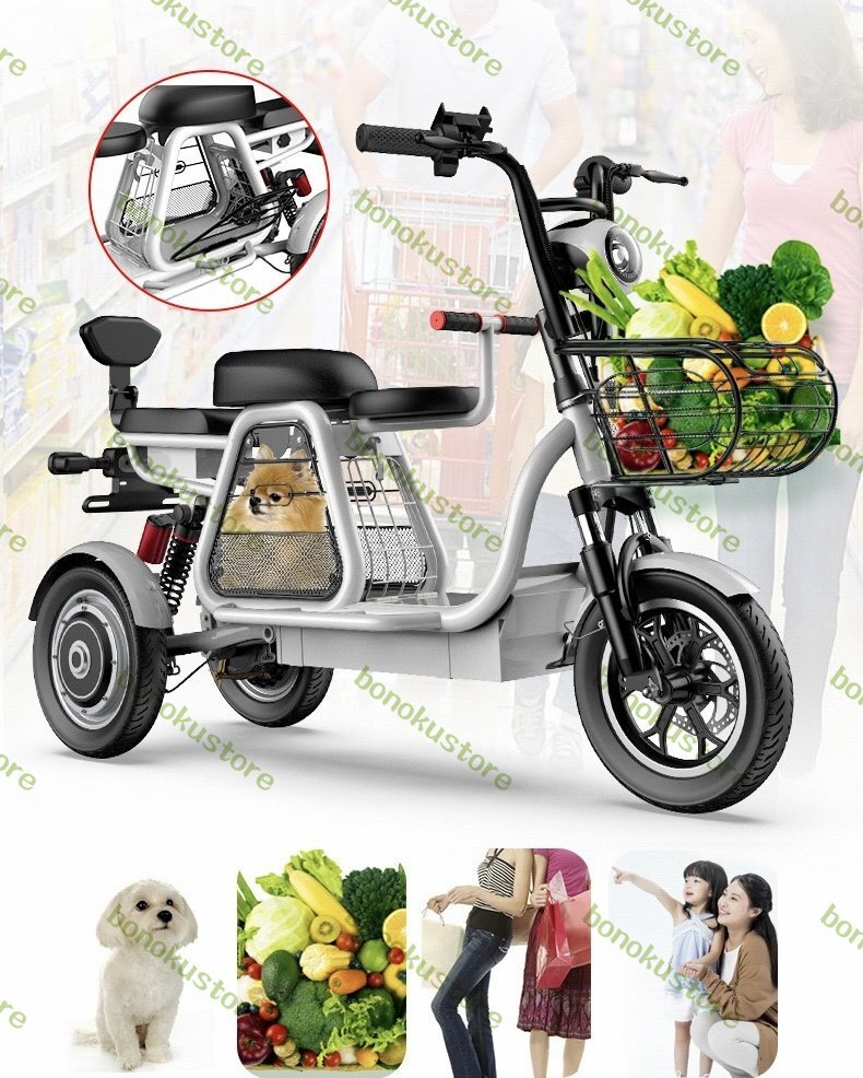 店長特選 大人用3輪電動自転車 スクーター付きロック付き高速バッテリー充電器帽子付きショッピング用 500W電動自転車48V 11A
