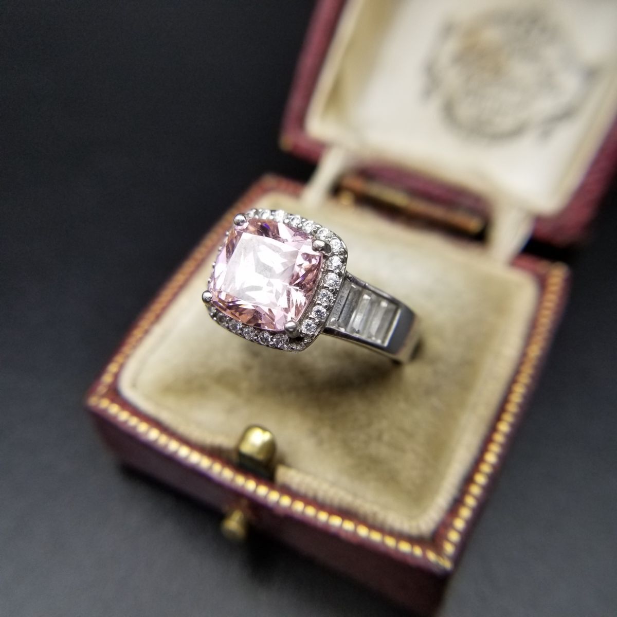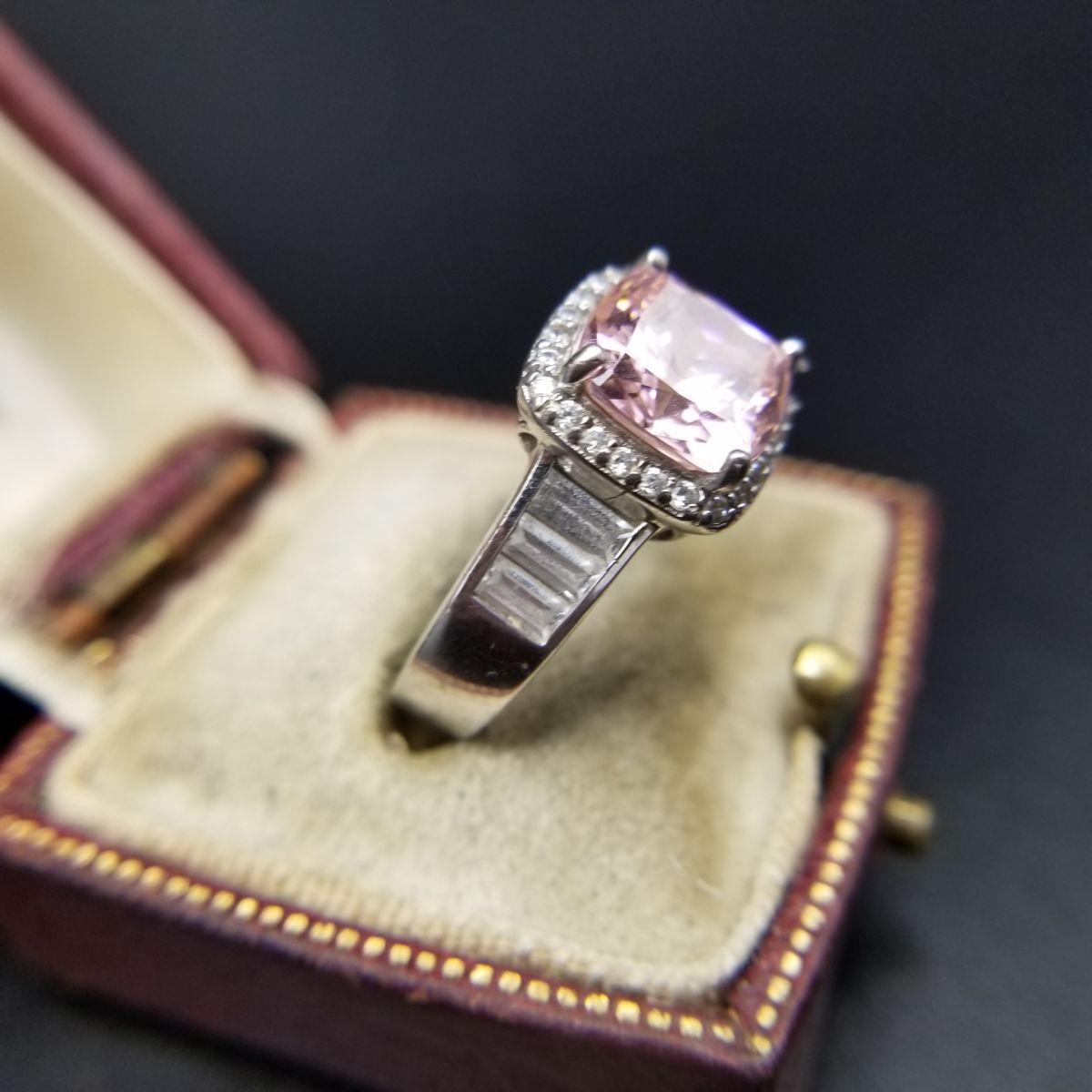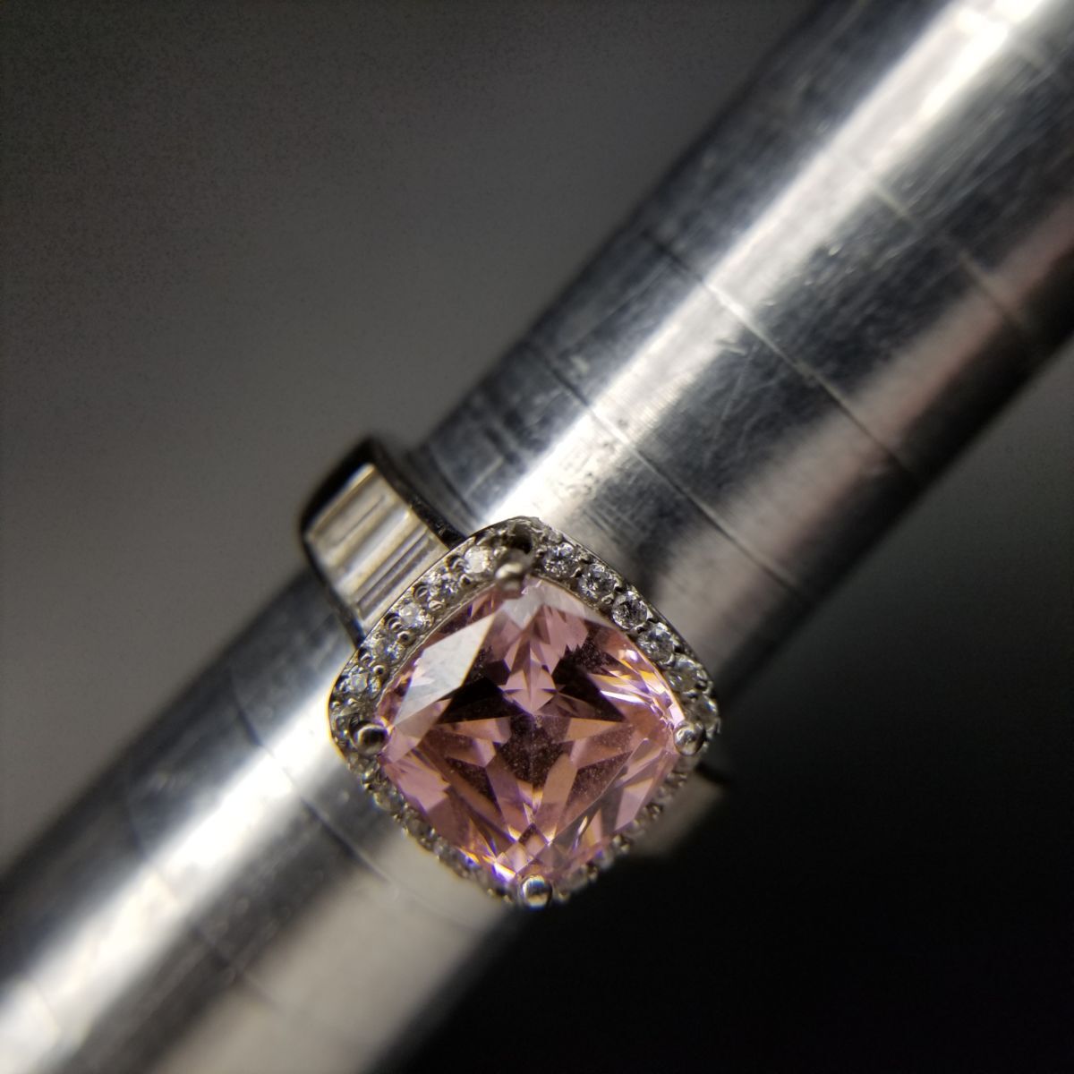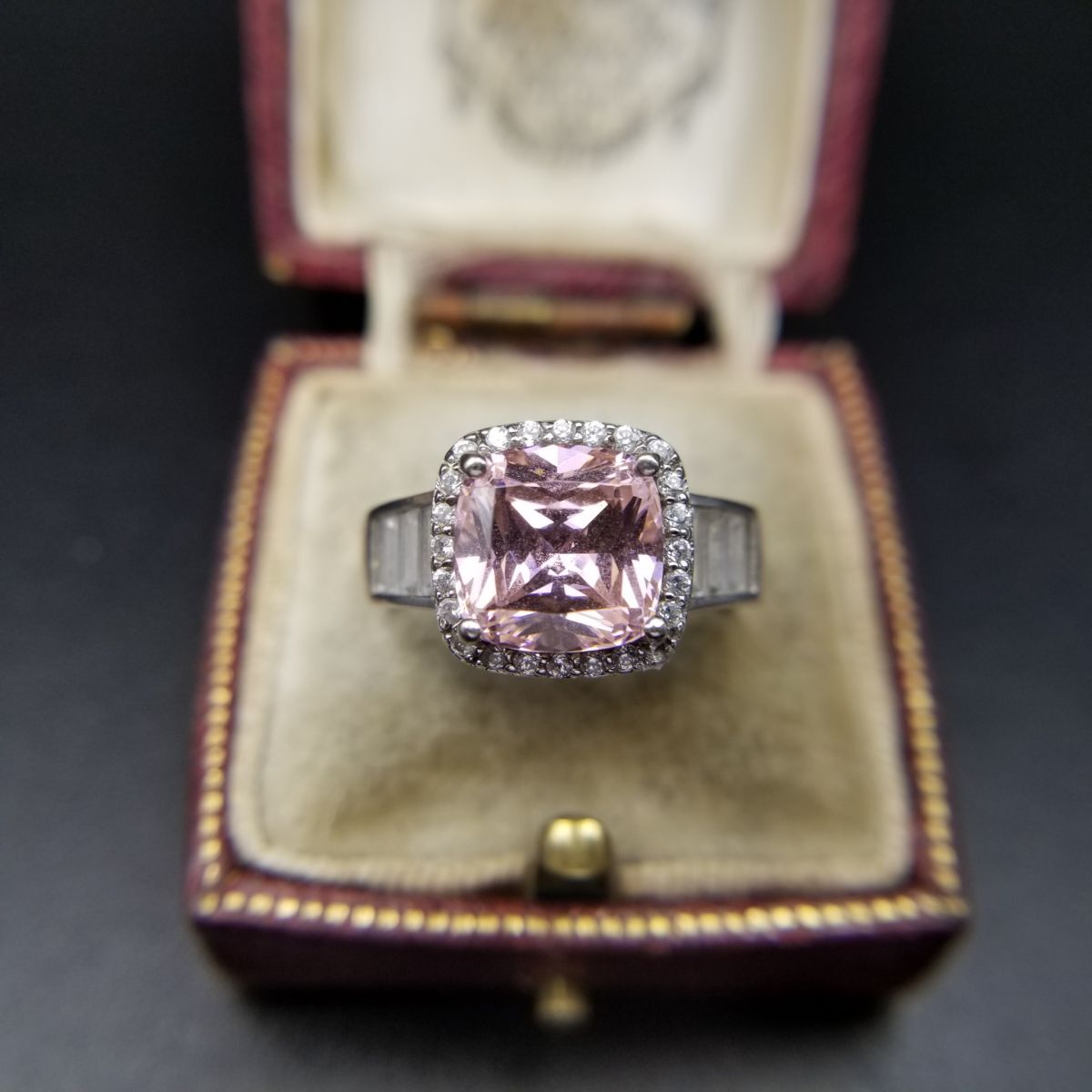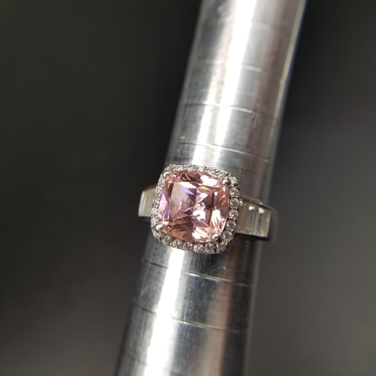 クッションカット ピンク キュービックジルコニア 925 シルバー ヴィンテージ リング 銀 指輪 クラシカル エレガント 煌めき Y16-T