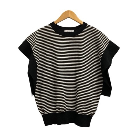 オペークドットクリップ OPAQUE.CLIP ニット セーター ノースリーブ クルーネック ボーダー 36 黒 ブラック 白 ホワイト レディース