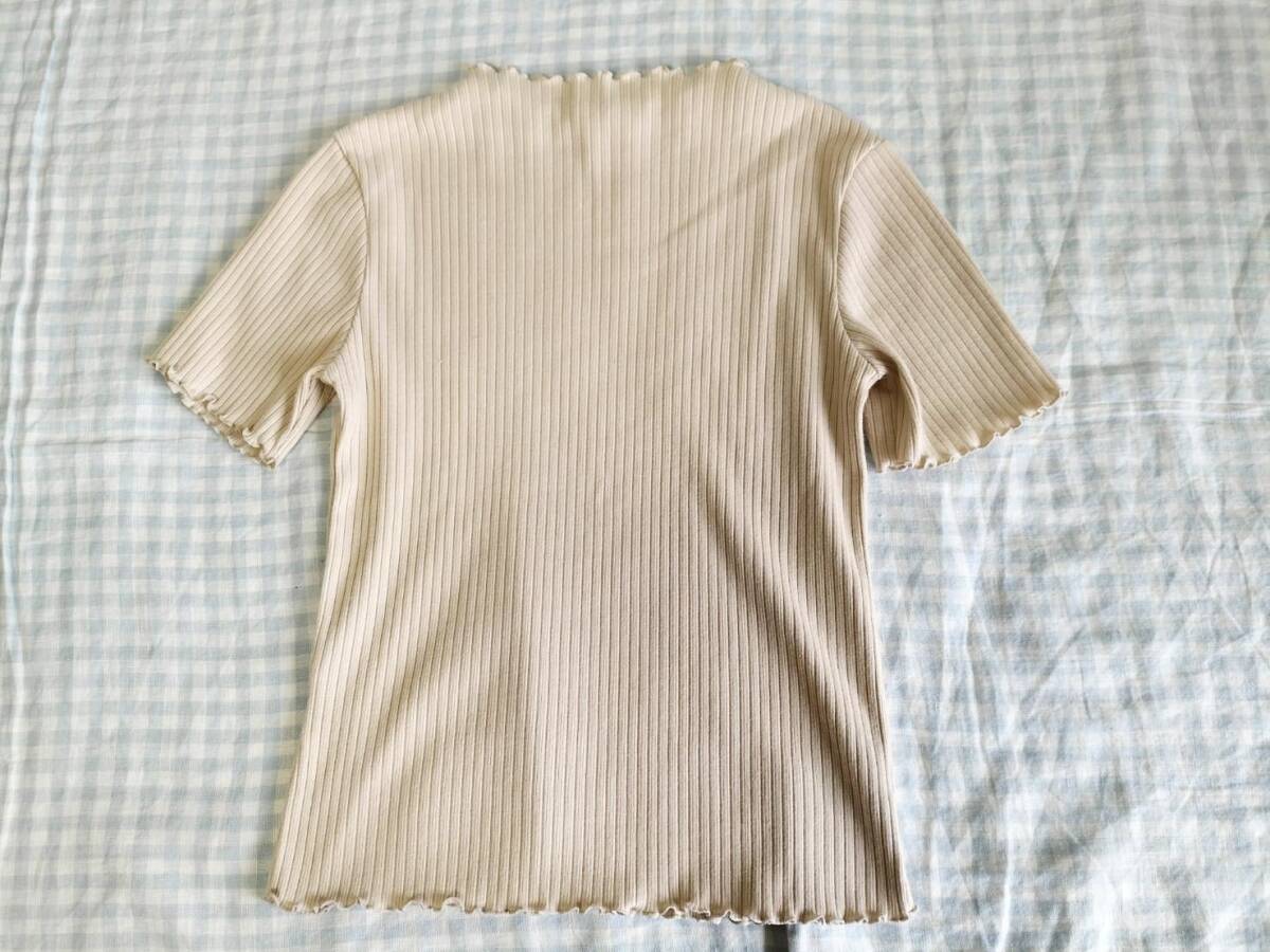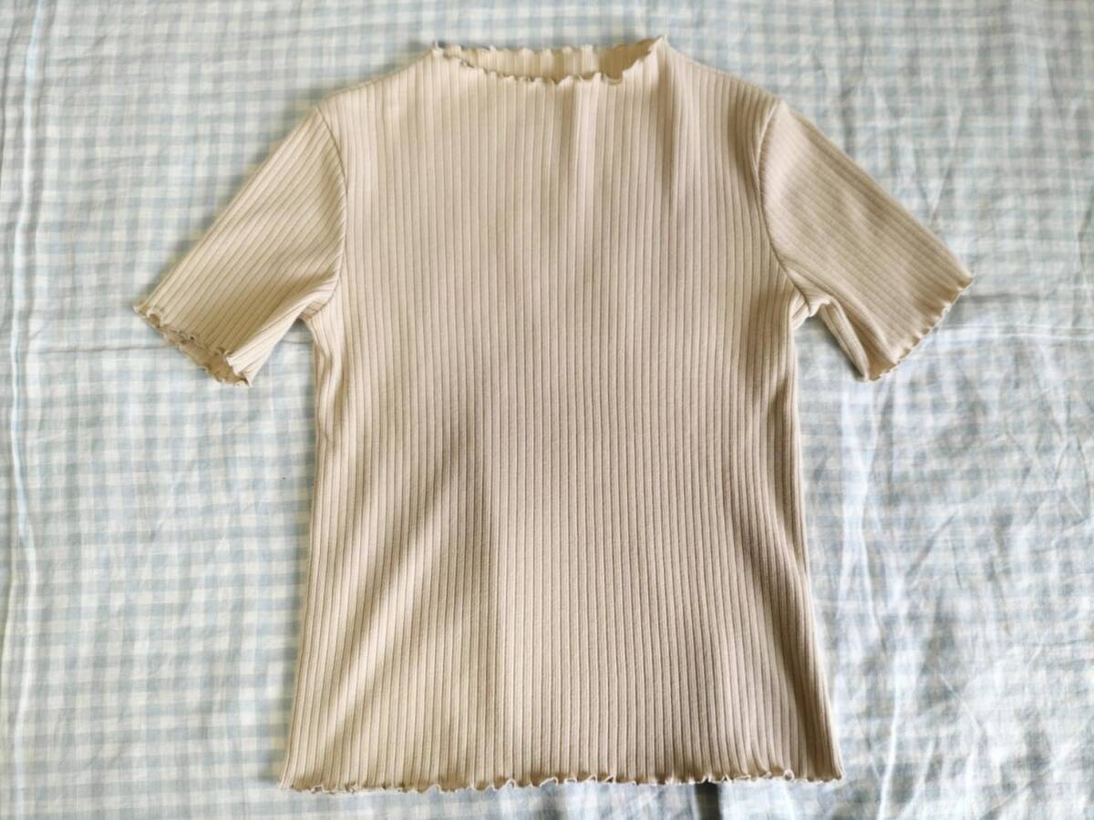 色はベージュ 素材:綿63%ポリエステル37% サイズS 肩幅35cm胸幅38cm袖丈19cm着丈52cm 他にも洋服、バッグ、靴、小物、本を出品していますので見てください。