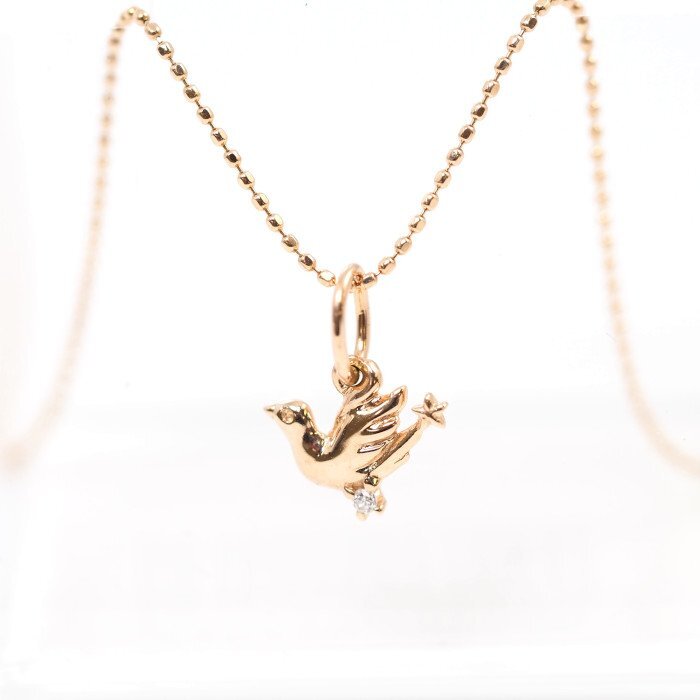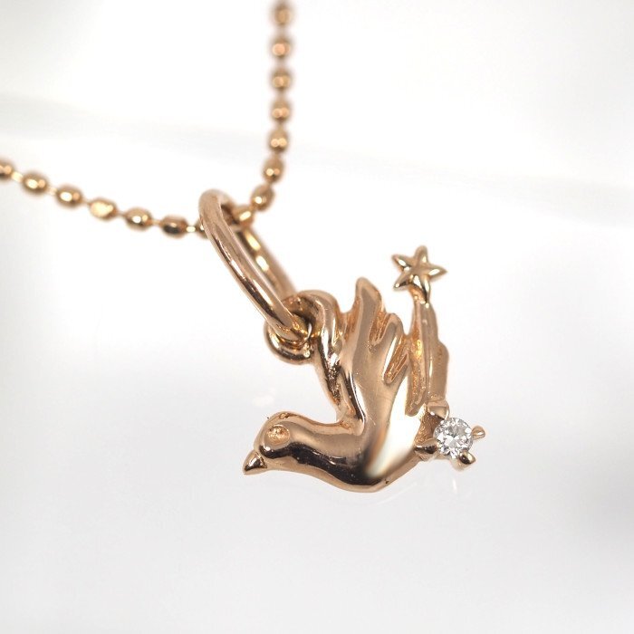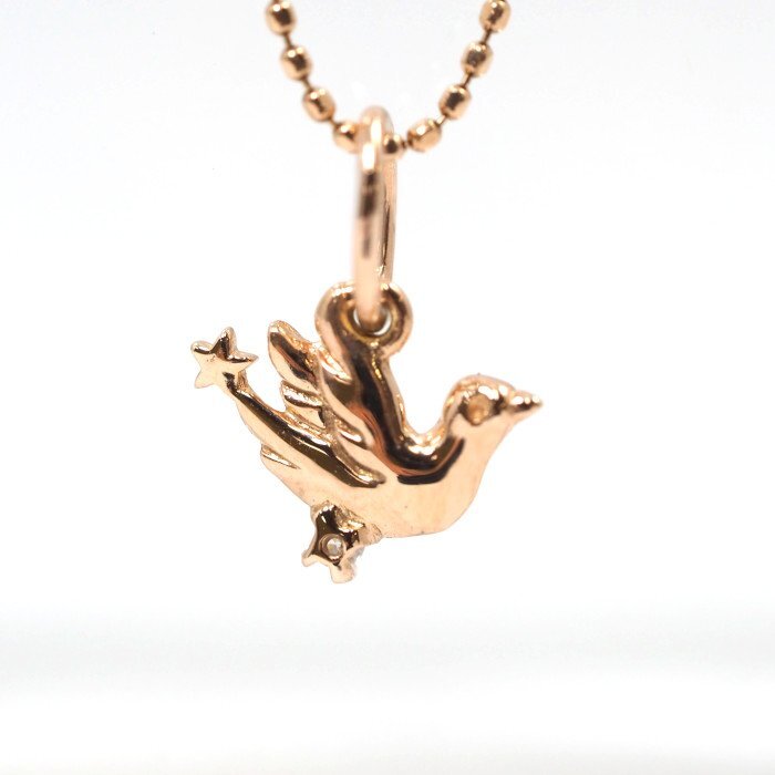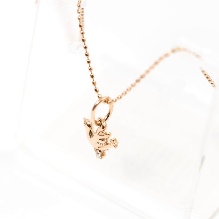 ノジェス K10ピンクゴールド ダイヤ バード 鳥 トリ チャーム ネックレス です。 肌なじみのよいピンクゴールドの鳥のモチーフが羽ばたく上品なネックレスです。小ぶりなサイズ感でありながらスターやダイヤの煌めきをあしらい丁寧な仕上がりに。飛躍・自由の象徴の鳥モチーフは、幸運を呼ぶとされてます。お守りジュエリーとしてデイリーにお使いいただけます。 若干の小傷は見受けられますが、全体的には綺麗な商品です。皆様のご入札お待ちしております。 |
