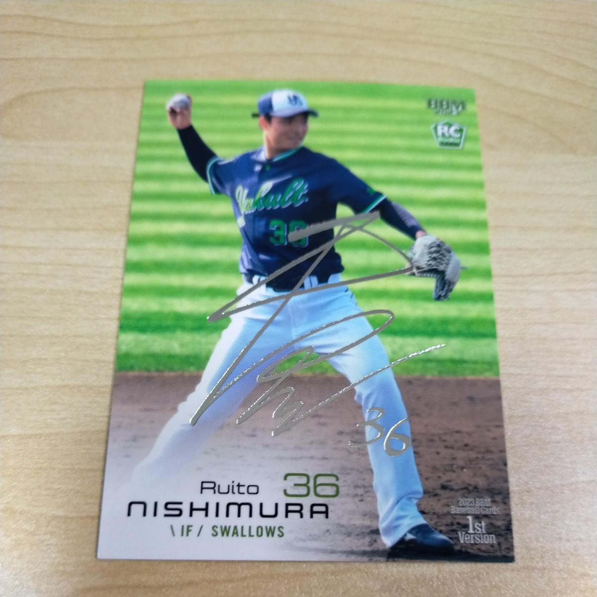 2023BBM1st   銀箔サイン  ヤクルト36西村瑠伊斗
