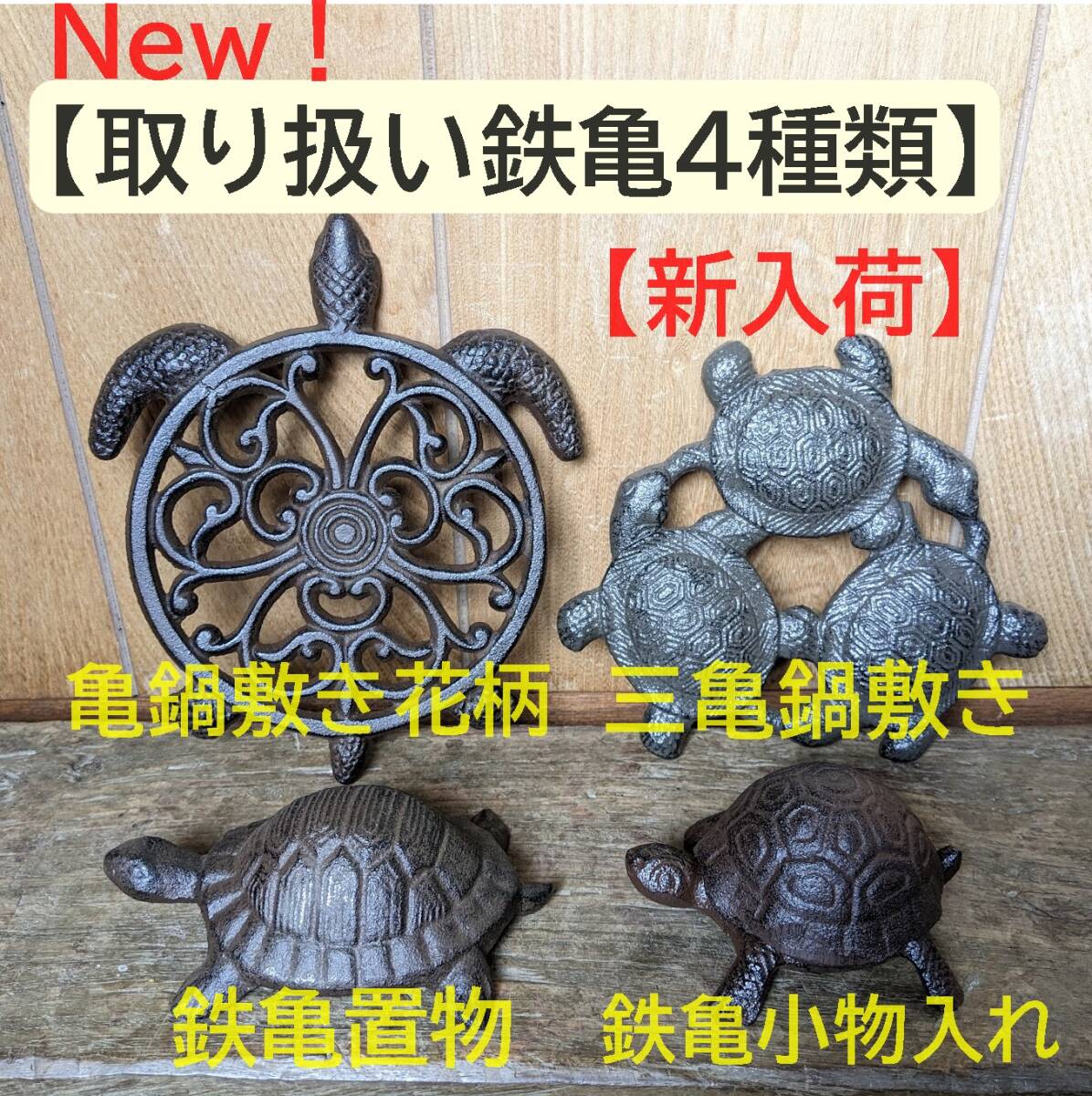 鉄亀鍋敷き花柄、三亀鍋敷き、鉄亀置物、鉄亀小物入れも