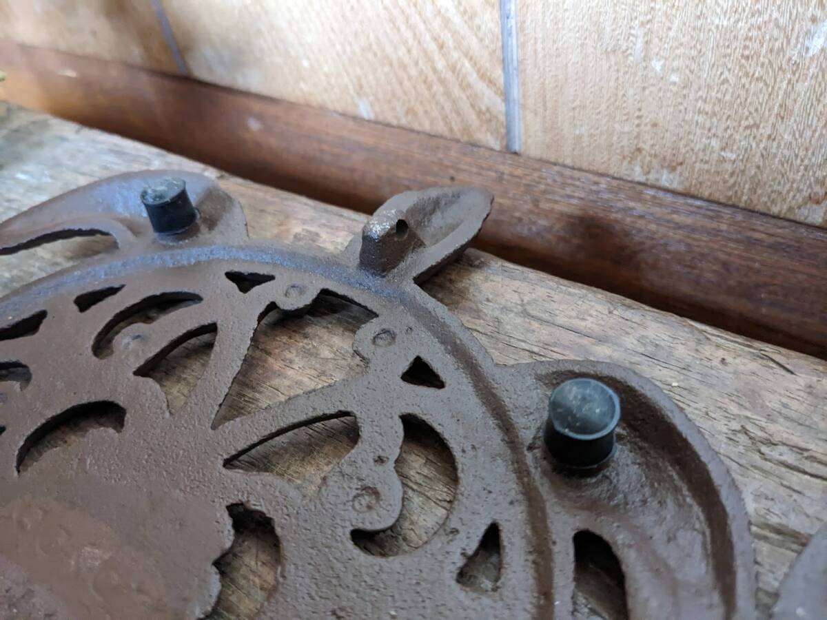 鉄製で程よく重さがあり、アンティーク調の茶色をしています。