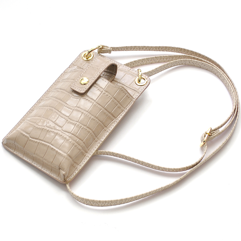牛革クロコ型押しのスマートフォンショルダーポーチ。