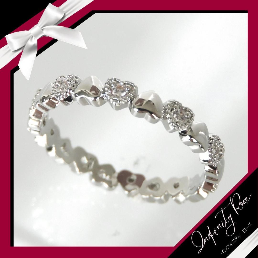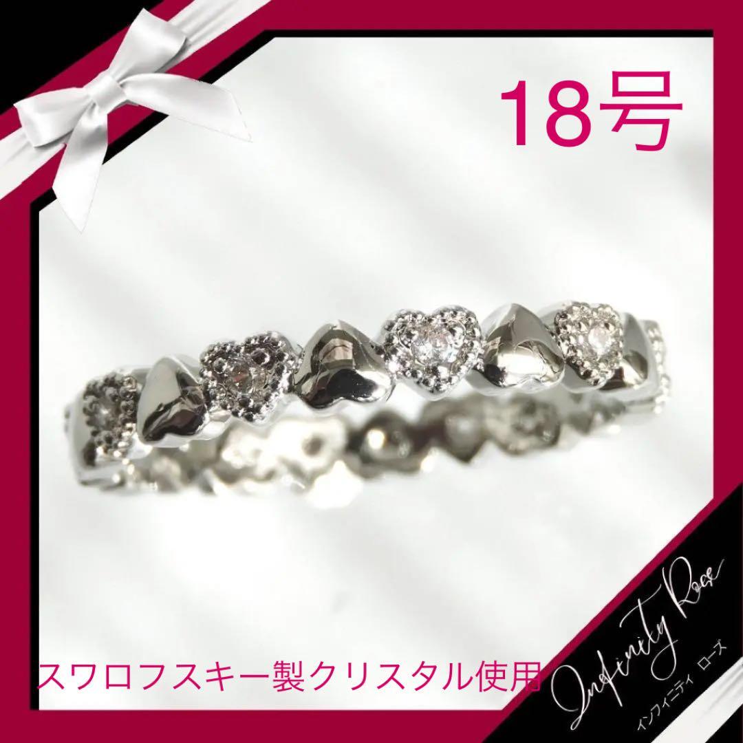 (1099)18号 シルバー 落ち着いたハート小粒リング 大人系 スワロフスキー製クリスタル使用