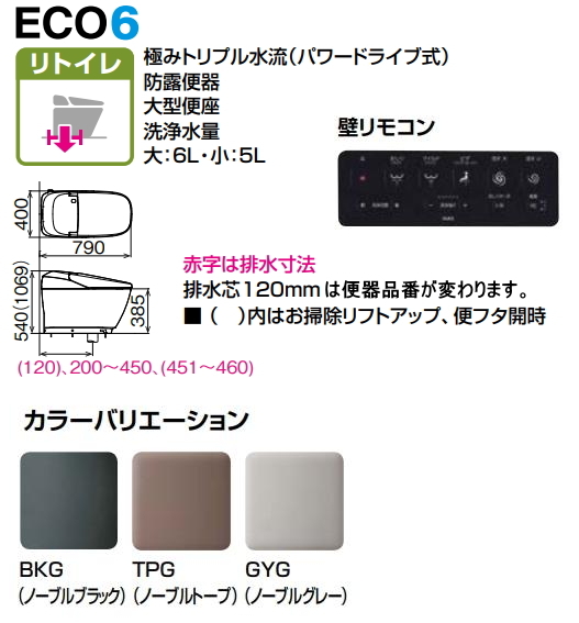 *床排水リトイレタイプです。排水芯:(120)200~460mm)