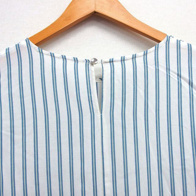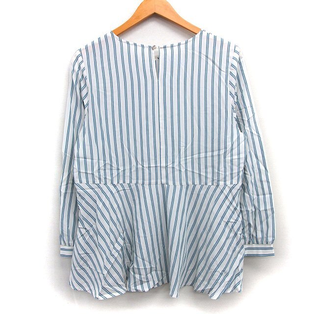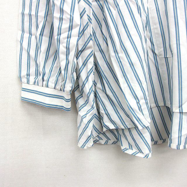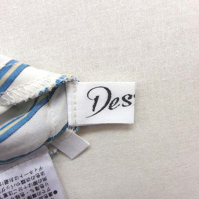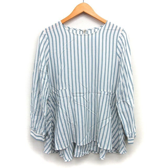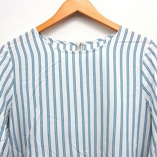デッサン Dessin カットソー ブラウス ストライプ 柄 ロングテール 長袖 丸首 3 オフホワイト 白 サックスブルー 青 /HT8 レディース