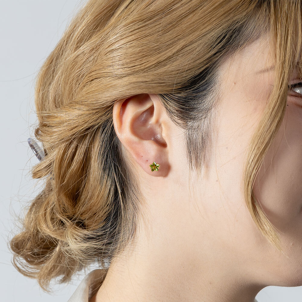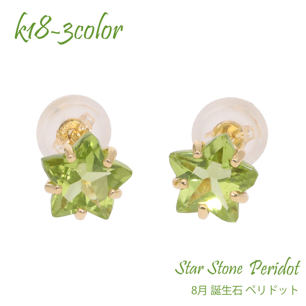 商品コードep709 発送は2週間ほどです≪8月の誕生石≫ペリドット 6mm 星型ストーンペリドットの石言葉は「運命の絆」「夫婦愛」「幸福」「和合」「希望」です。キラリと輝く星のピアス6mmのカラーストーンを丁寧に星のかたちにカットしたかわいいピアス。大粒のストーンが光って、 星のデザインにぴったりの輝きです!デイリーカジュアルに気軽に使えるデザイン。つけやすいスタッドタイプだから、重ねづけにもセカンドピアスにもおススメです。◎天然の石を使用する場合、素材の大きさ・形・色は1点1点多少異なります。また、お客さまがお使いのモニターの設定等により色の見え方が実際の商品と異なることがございます。◆商品詳細材質K18ゴールド(ホワイト・ピンク・イエローよりお選びいただけます)宝石名ペリドット 約6.0mm(スターカット)×2pc大きさトップ最大幅 タテ 約6.0mm×ヨコ 約6.0mmポスト 約0.7mm×10.0mm備考材質の刻印入りK18ゴールド製シリコンキャッチ付お届け約2週間(当店営業日)お誕生日 結婚記念日 クリスマス プレゼント ホワイトデー 結婚式 卒業式 入学式 新生活 母の日