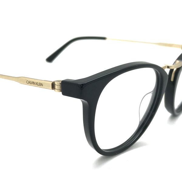 左右のテンプルに「CALVIN KLEIN」ロゴあり。テンプルは、弾力のあるバネ蝶番タイプ。お洒落なデザインのメガネフレームです♪