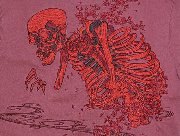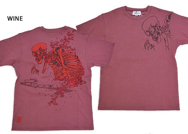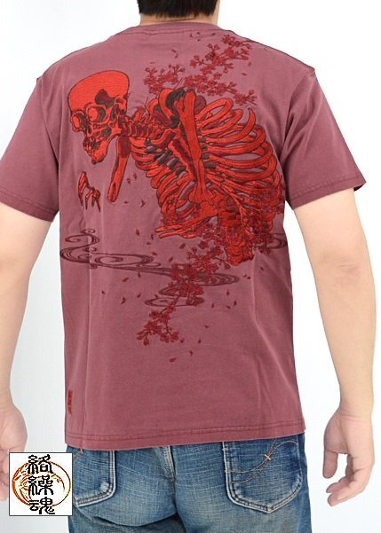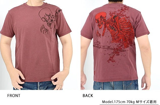 桜髑髏ピグメント半袖Tシャツ◆絡繰魂 KKD-M25361 | |||||||||||||||||||||||||