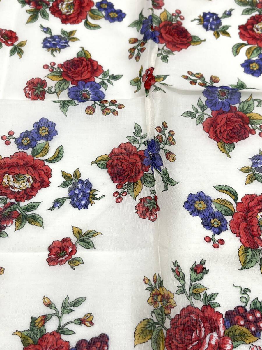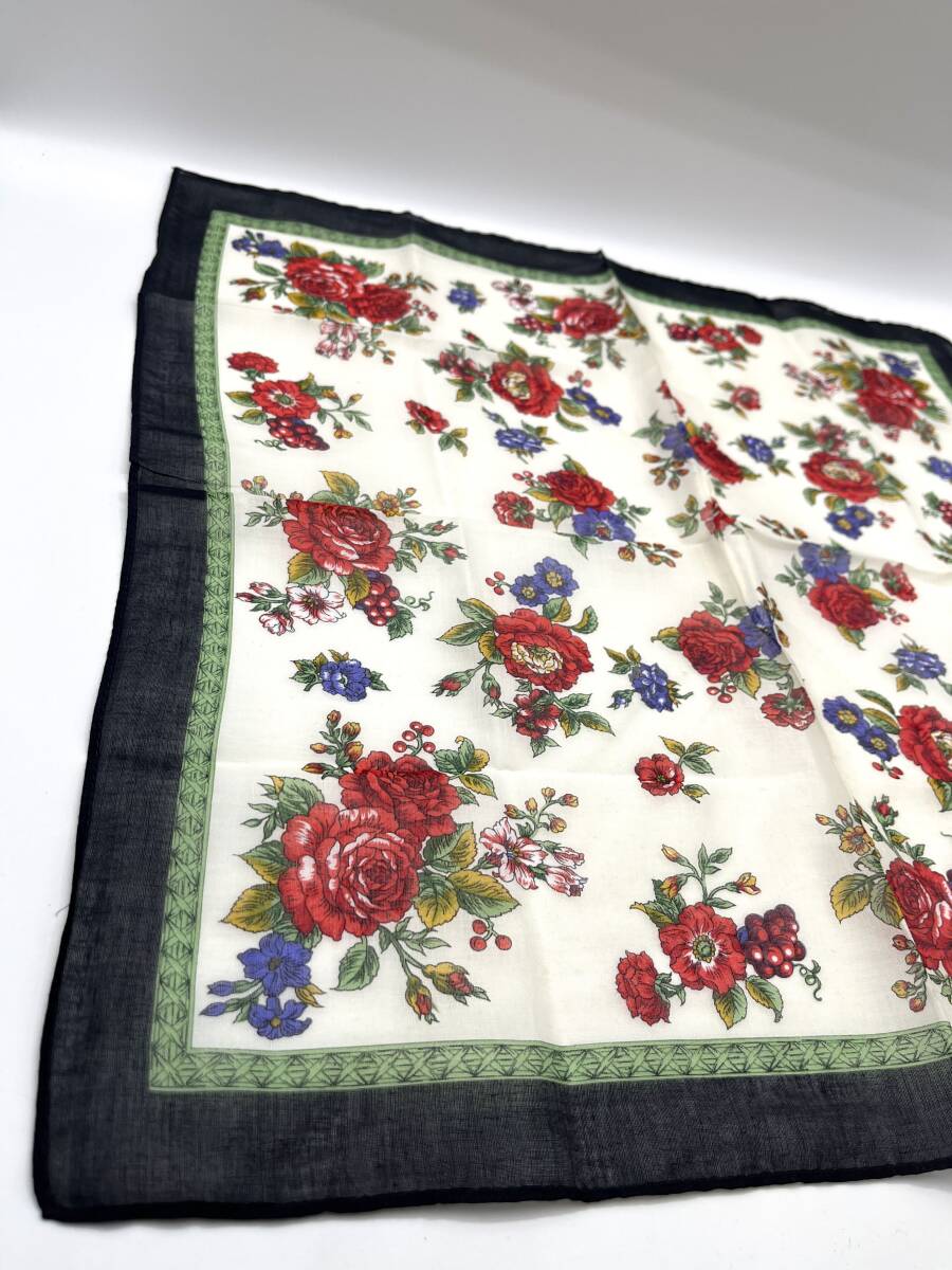 ハンカチ バンダナ 花柄 フラワー レッド×パープル×グリーン×アイボリー 縁ブラック コットン 綿100%