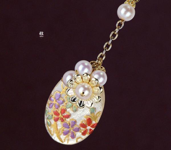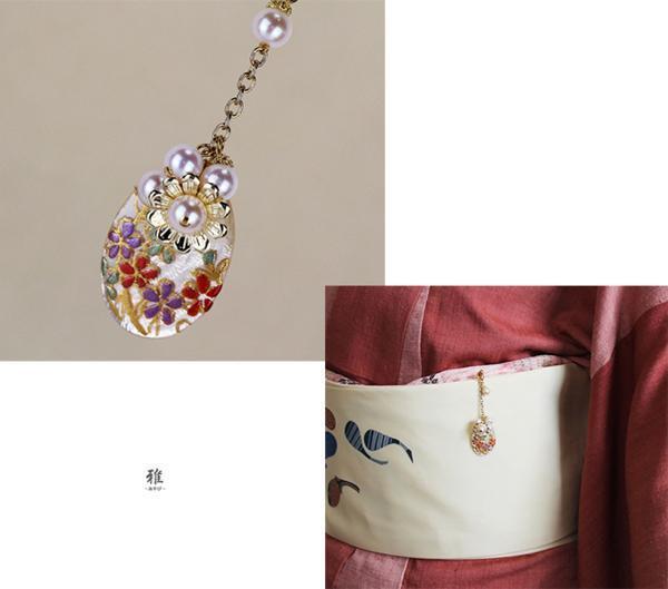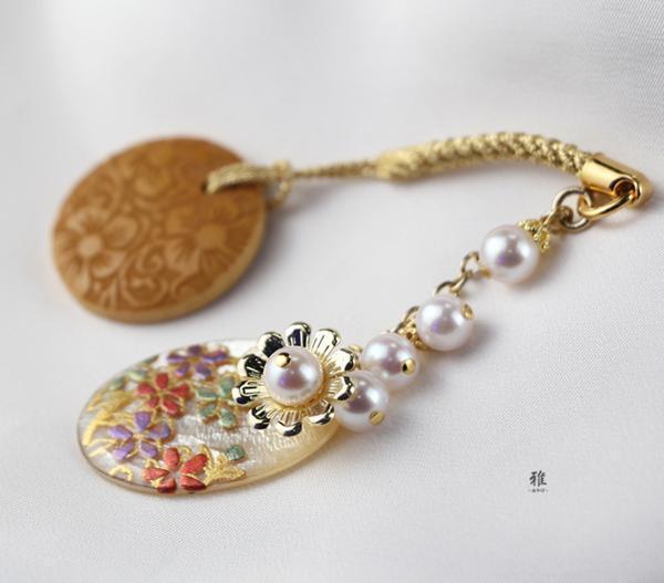 【 雅 】 美しい蒔絵♪白蝶貝*天然あこや本真珠 帯飾り