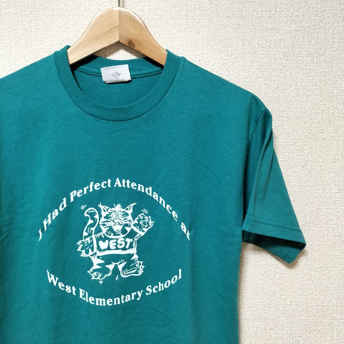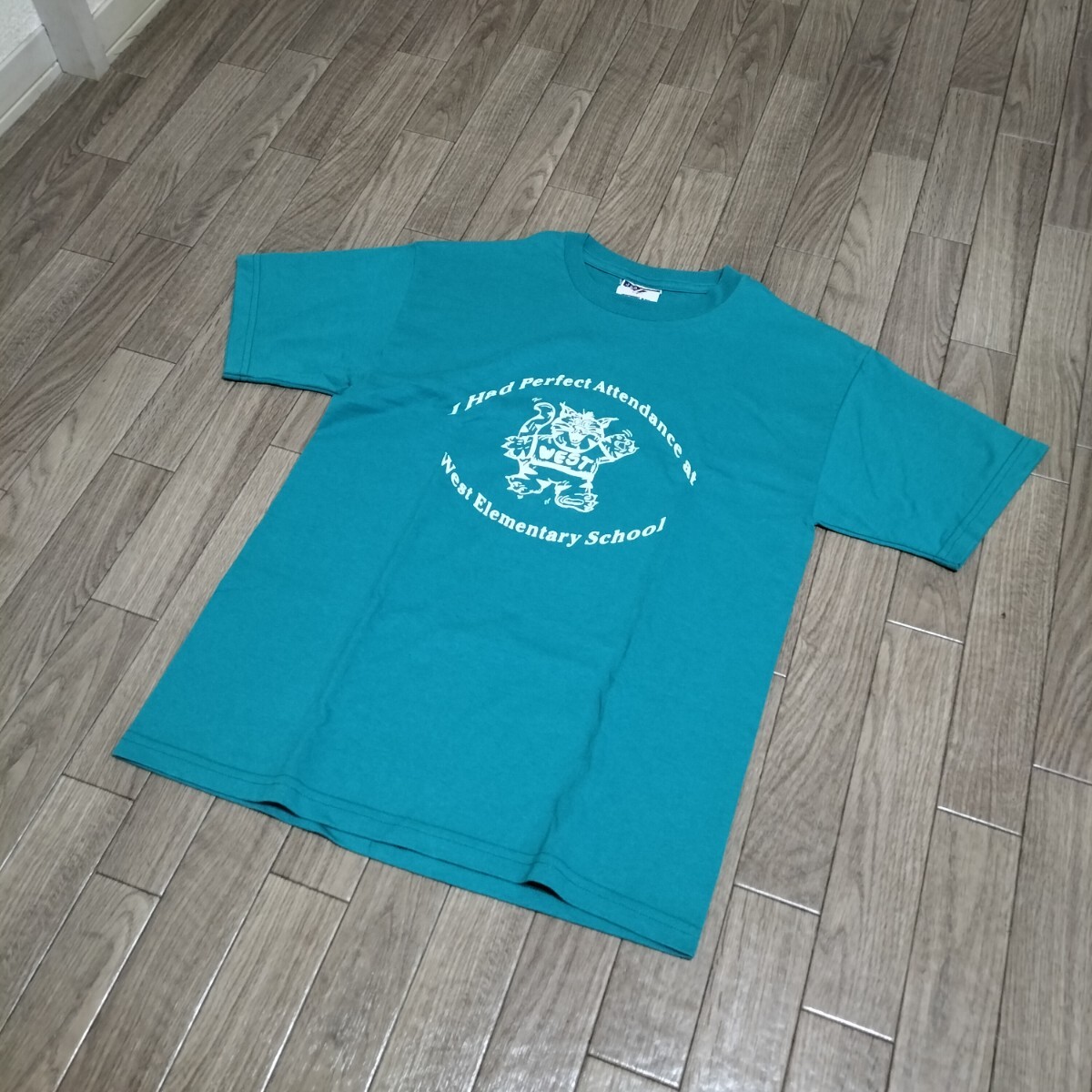 美品☆90s JERZEES ジャージーズ 半袖 Tシャツ カレッジ系 クルーネック ラバープリント コットンポリ トップス カットソー グリーン 希少 ヴィンテージ オールド 古着 USED