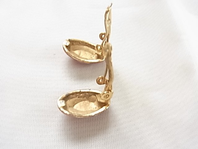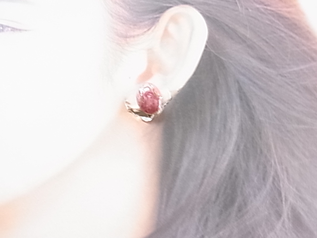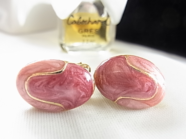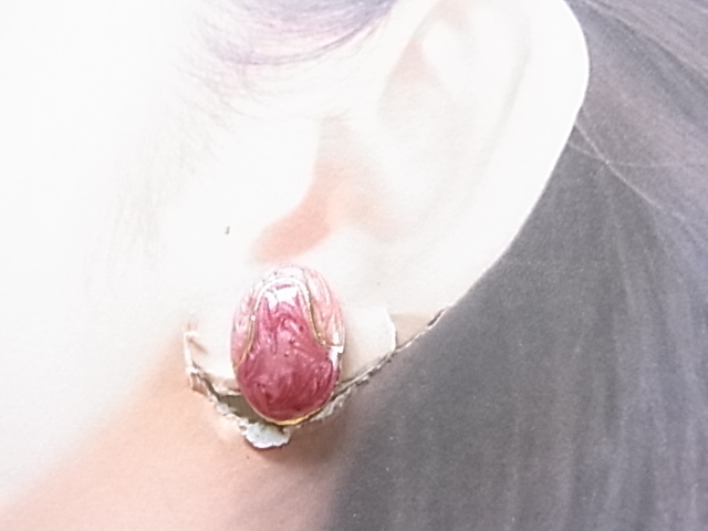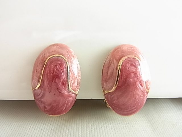 ビンテージ/ヴィンテージ ぼたんいろピンクとローズピンクトーンとゴールドトーンのマーブル調 楕円形が素敵 華やぐイヤリング■