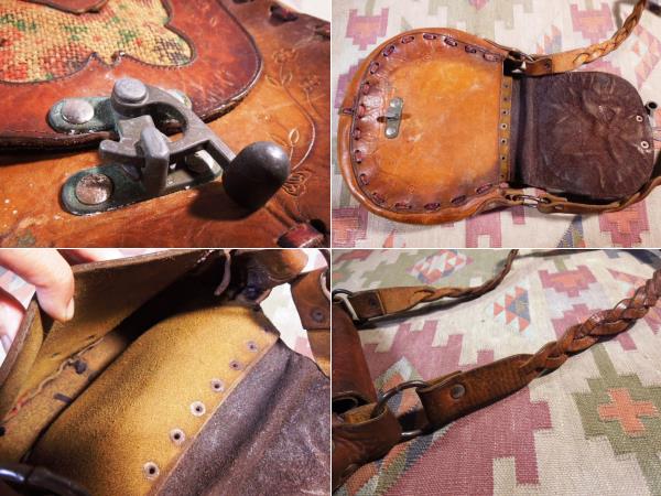 ビンテージ*ウエスタンカービングバッグ*バタフライ柄*本革製ヒッピー