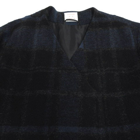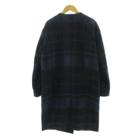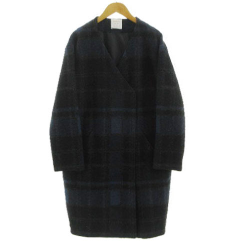 Sense of Place by Urban Research コート ノーカラー コクーン チェック 起毛 ウール混 ネイビー 紺 ブルー 青 グレー F レディース