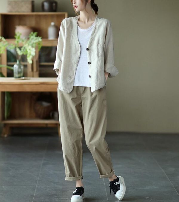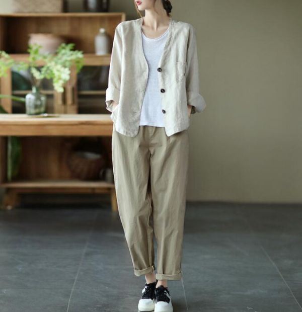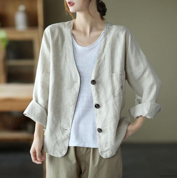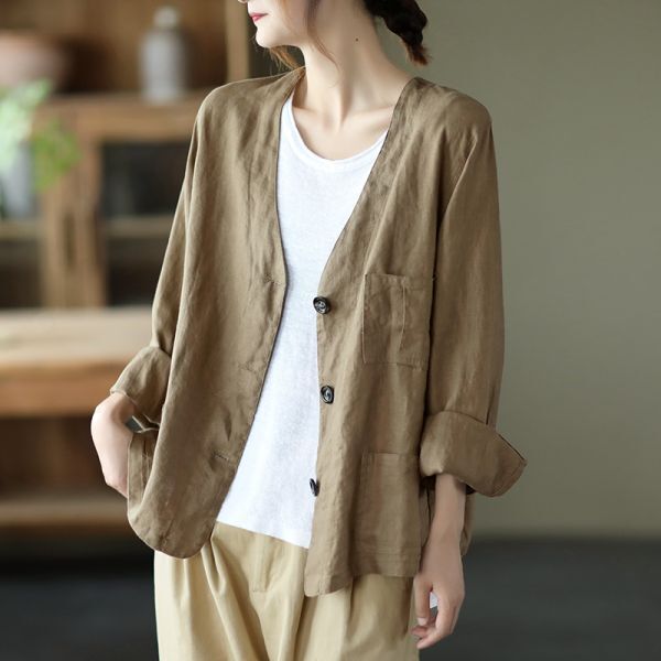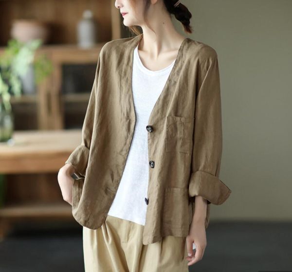 新入荷~ 上品 カーディガン 大きいサイズ トップス 無地 ゆったり 長袖 オフィス 通勤 羽織り トップス おしゃれ きれいめ あす楽~ 麻色