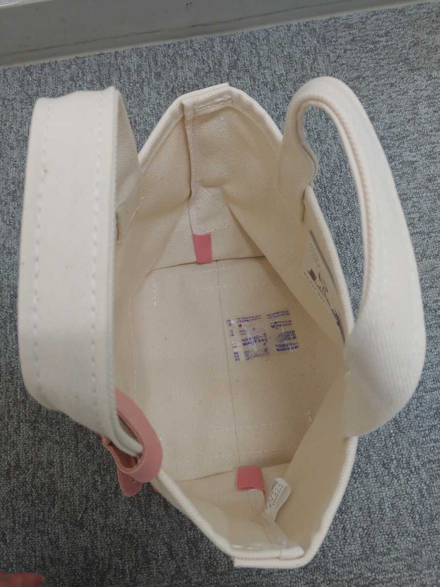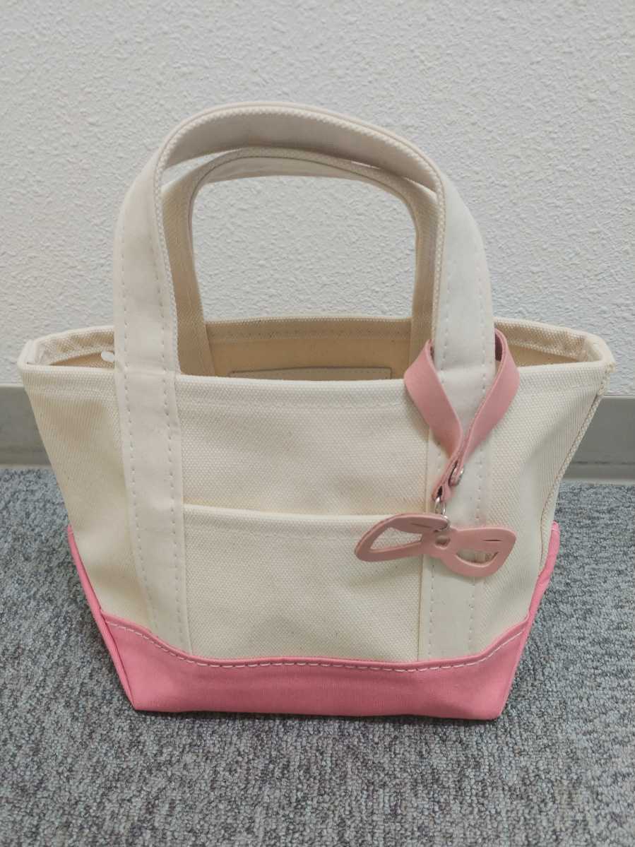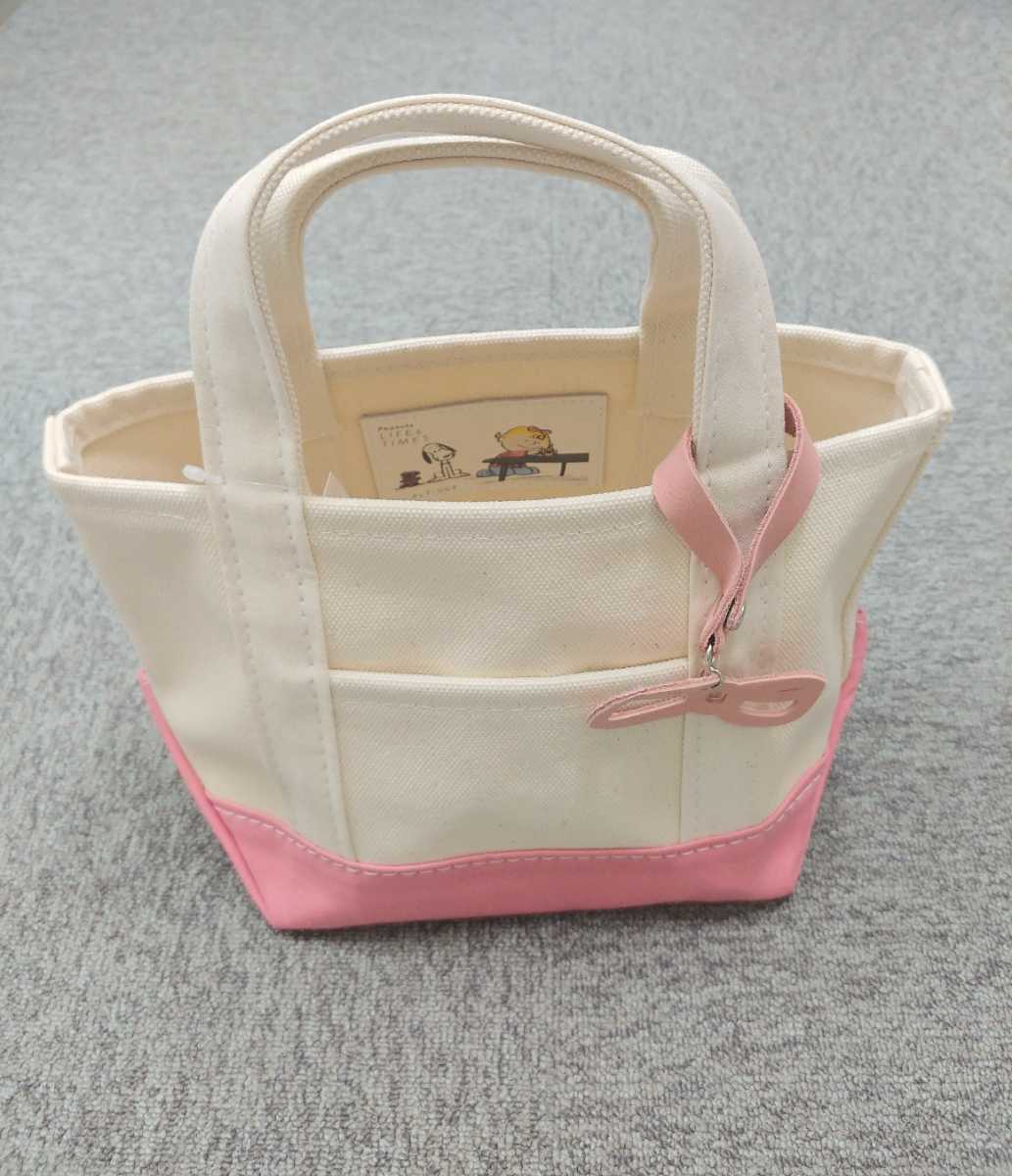 ピンクのトートバッグでバックの中にスヌーピーとサリーが隠れており、チラッと見えるところが可愛いです。