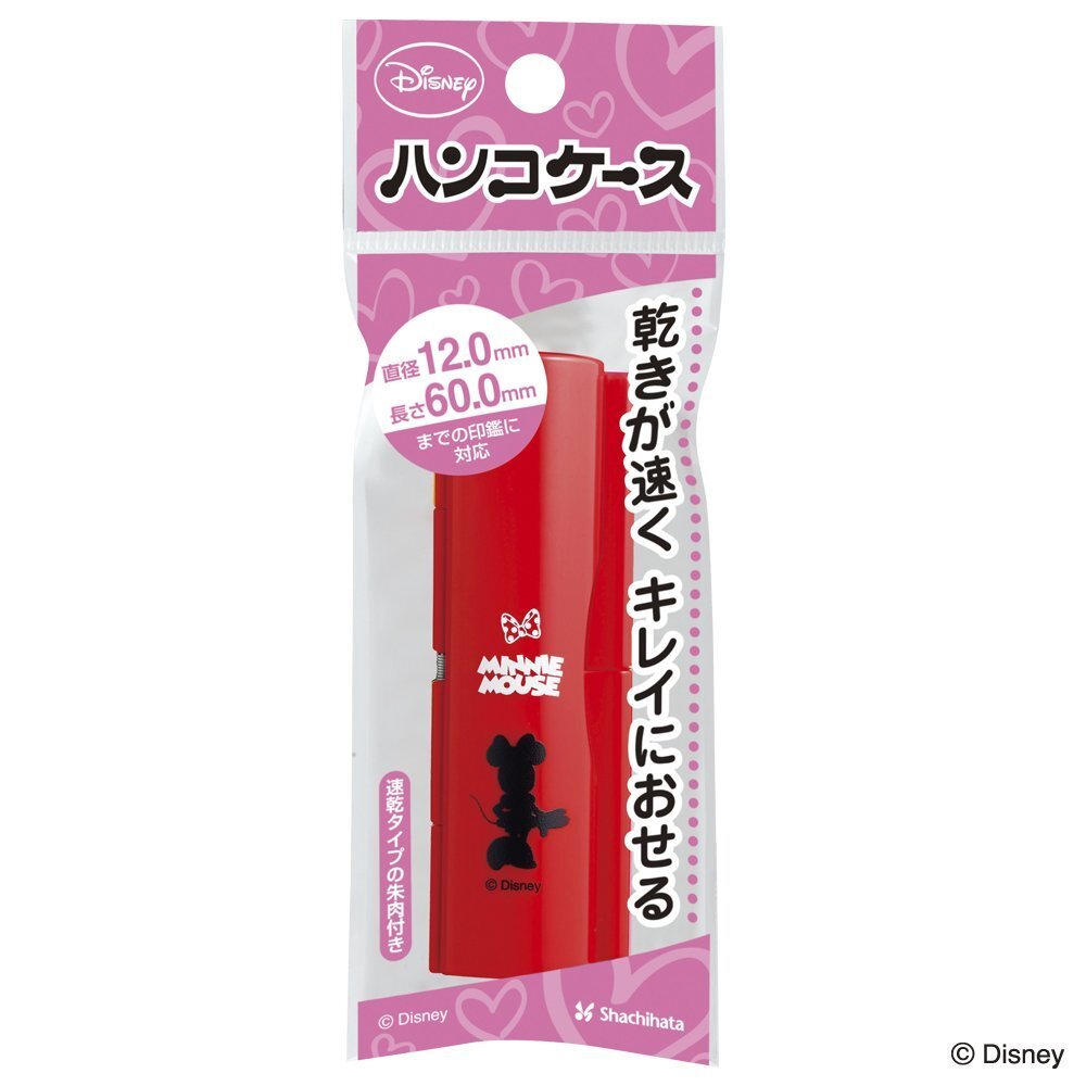 大人気ディズニーキャラのハンコケースです。ミニーがシルエットで登場。〈br〉使いやすさにこだわった、形態に便利なハンコケース。朱肉つき。速乾性に優れた朱肉で、乾きが速く、美しい印影が残せます。直径12mm×長さ60mmまでの印鑑が1本収納可能です。側面についたくぼみで印鑑が取り出しやすくなっています。フタを開けたとき180度で泊まるので、印鑑が飛び出しにくく、朱肉がつけやすくなっています。