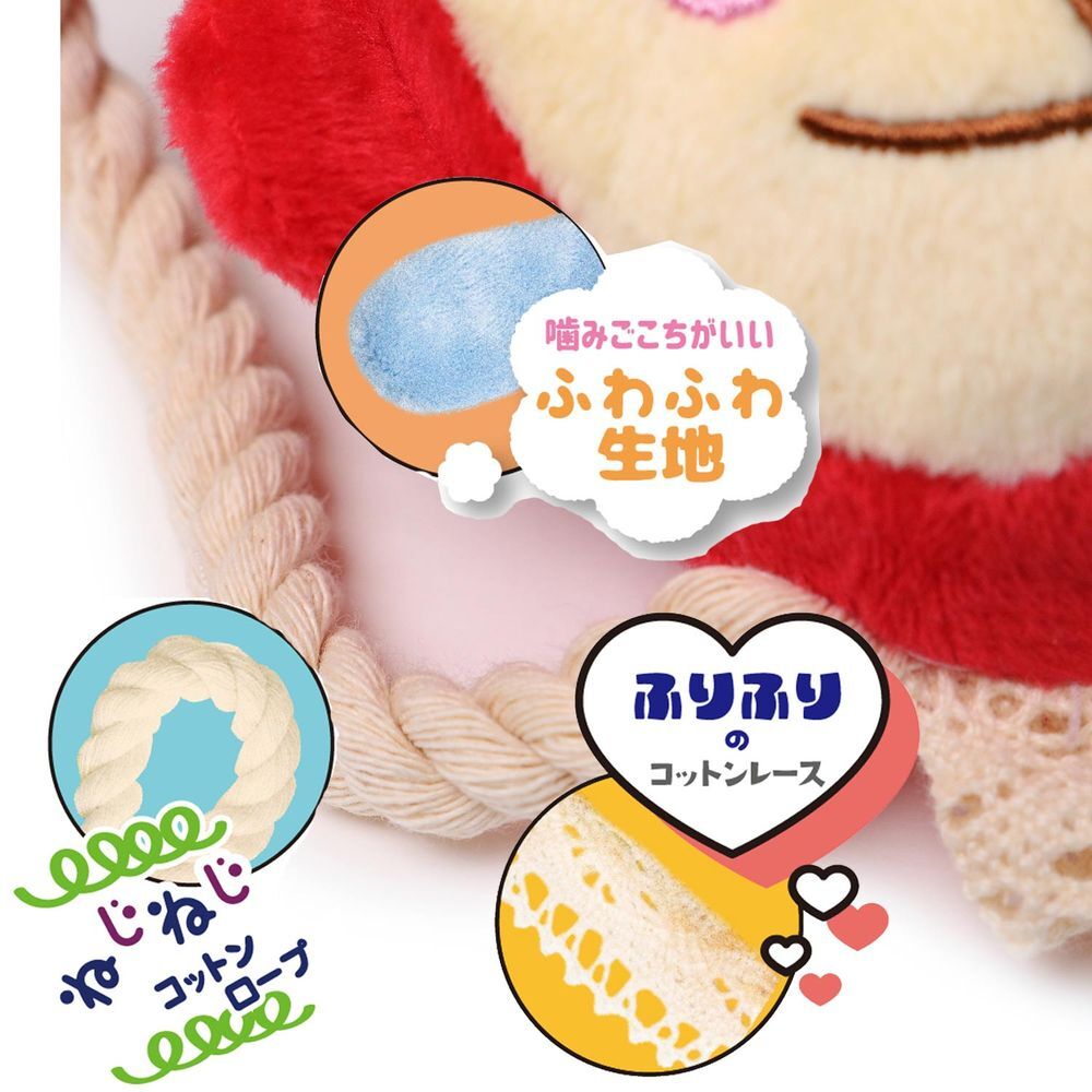 ・天然素材のコットンロープやテープなど、かたさの違う飾りをガジガジ噛めるので、わんちゃんも夢中で遊べます!