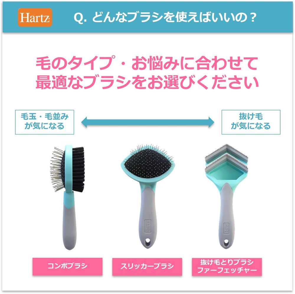 ・被毛をかき分けて皮膚に当たらないように根元から毛並みに沿ってやさしくていねいにとかしてください。
