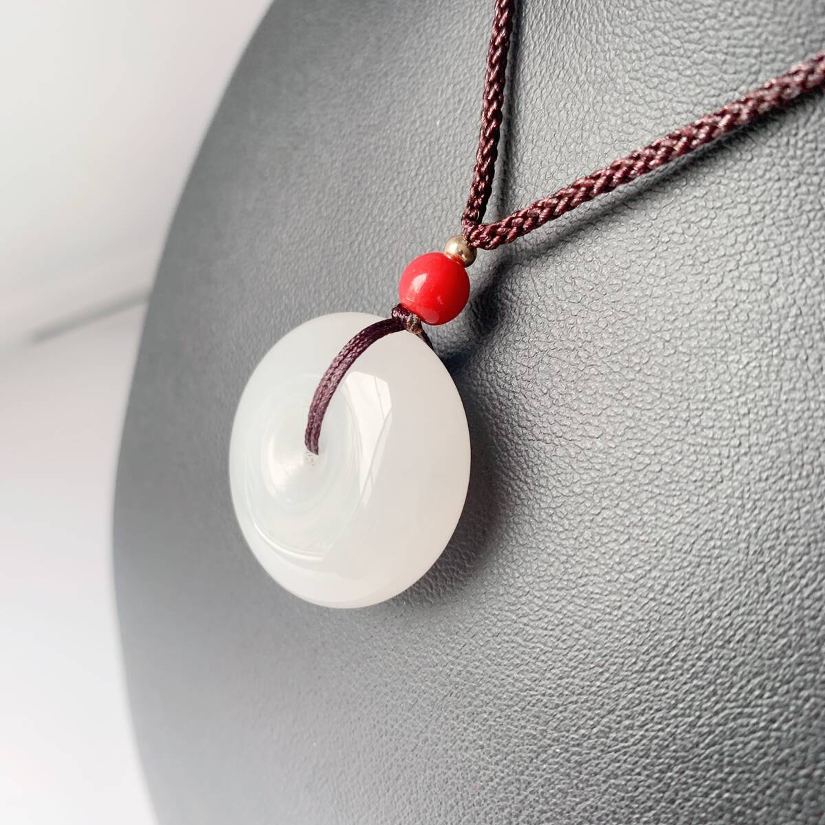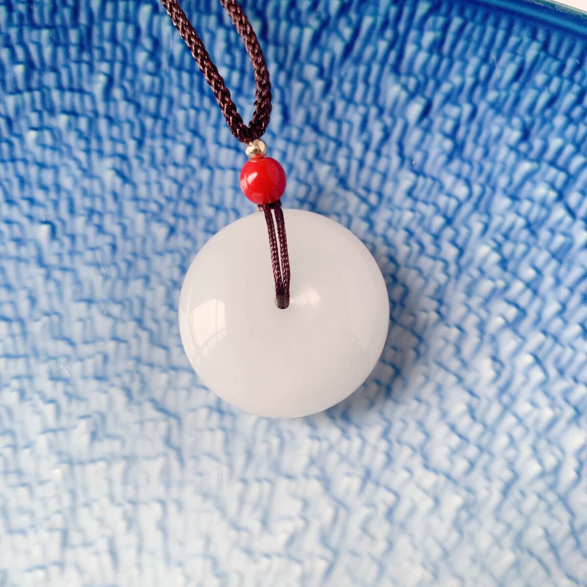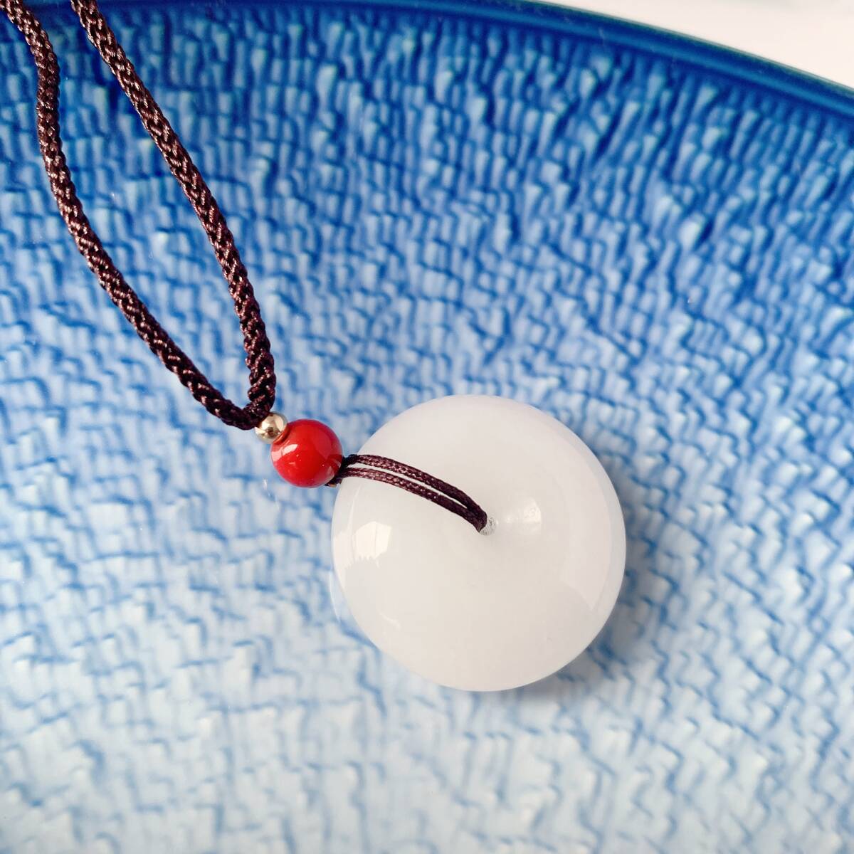 ♪金糸玉・白玉♪天然石♪ネックレス♪ペンダント♪ドーナツ型♪平安扣♪お守り♪翡翠・ヒスイ♪巾着袋付き♪プレゼントにもP204299