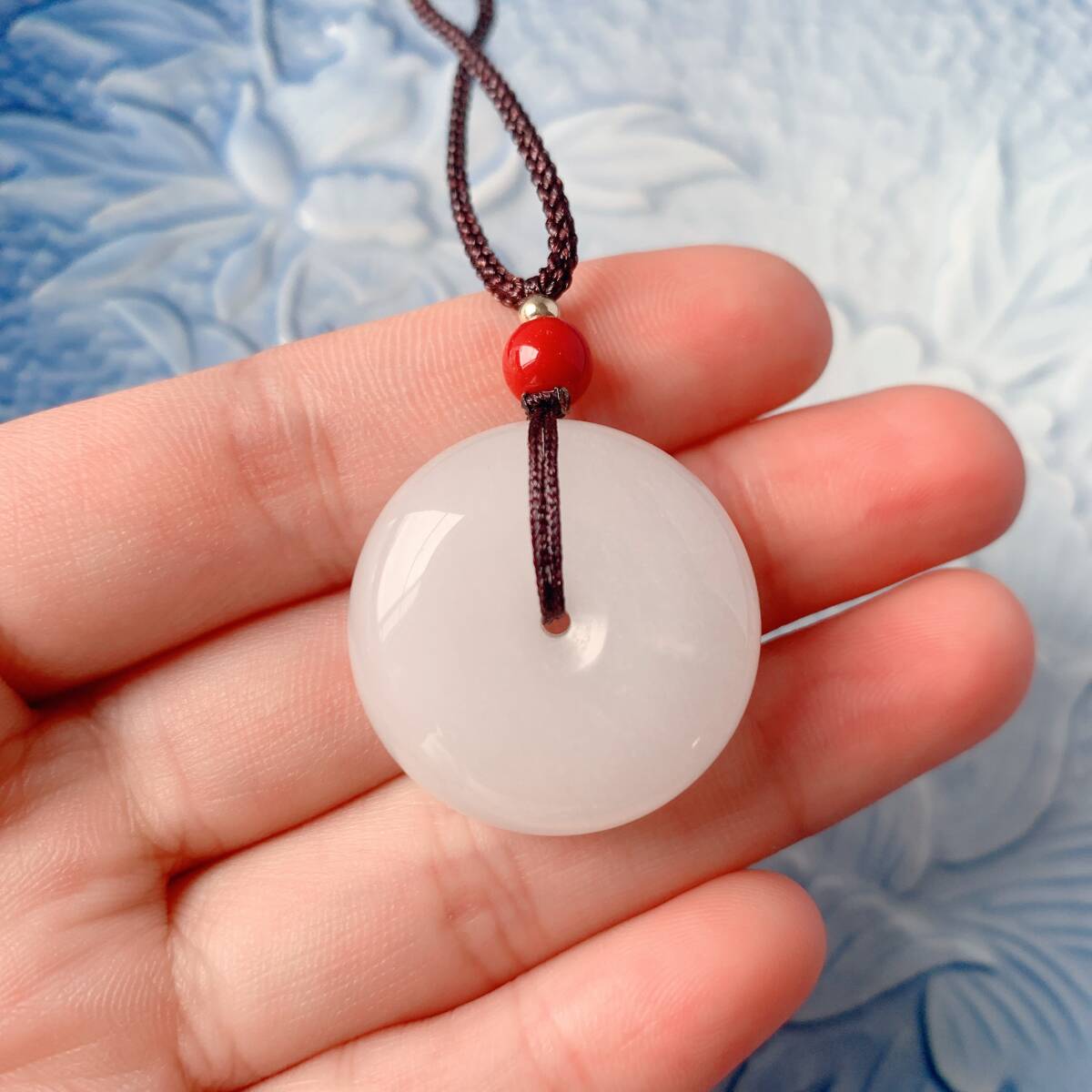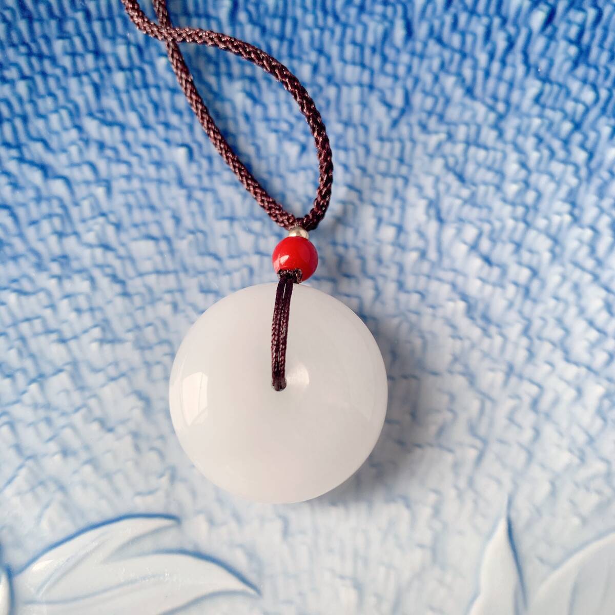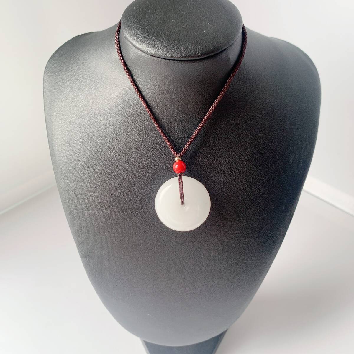 ♪金糸玉・白玉♪天然石♪ネックレス♪ペンダント♪ドーナツ型♪平安扣♪お守り♪翡翠・ヒスイ♪巾着袋付き♪プレゼントにもP204299