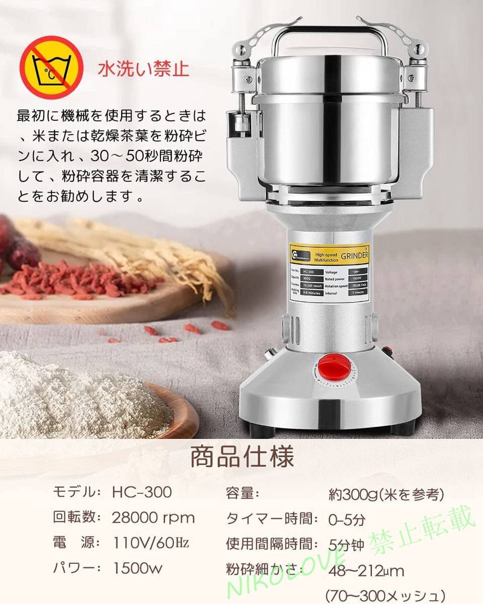 「1分間に微粉末」1300wハイパワー、28000r/minの回転数、3枚粉砕羽あり、あっという間粉末が仕上がり、サラサラ感が抜群です。