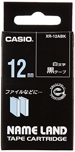 遠くからでも映える、すっきりシャープな白文字。 ●ラベル幅/12mm ●ラベル色/黒 ●文字色/白 ●テープ長さ/8m ●単位/1個 ●メーカー品番/XR-12ABK |