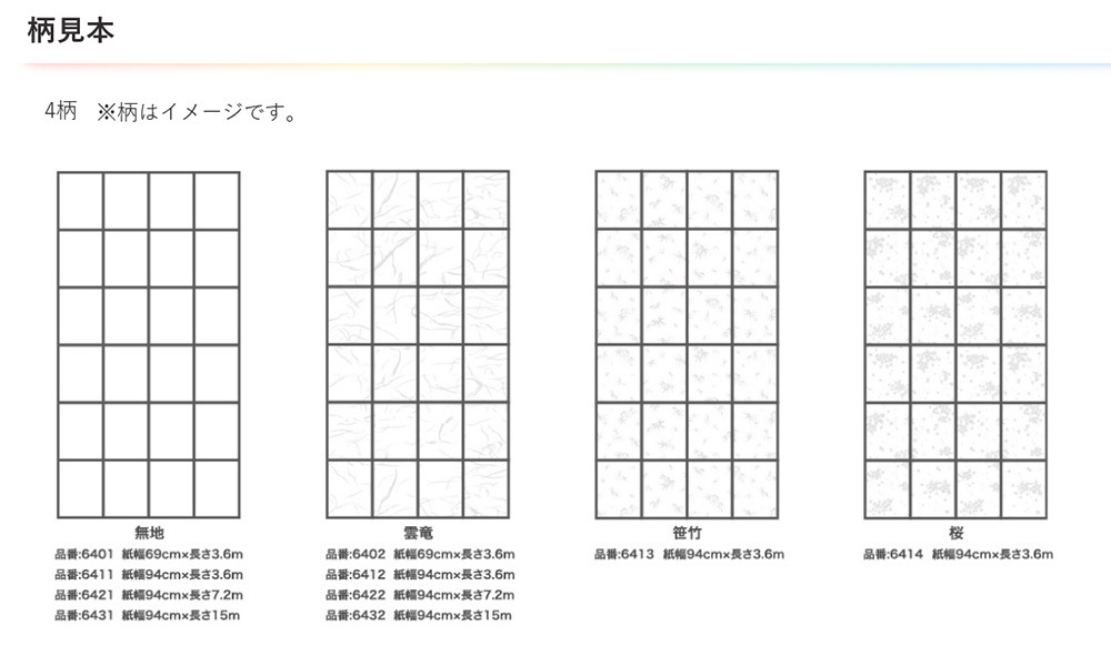 ・紙幅69cm×長さ3.6m、紙幅94cm×長さ3.6m/障子2枚分