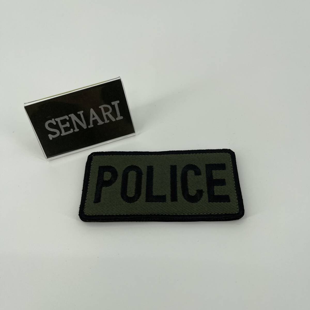 S-608/サバゲー サバイバルゲーム/ 簡単取付! ポリス POLICE 警察 ベルクロ ワッペン パッチ / オリーブドラブ グリーン