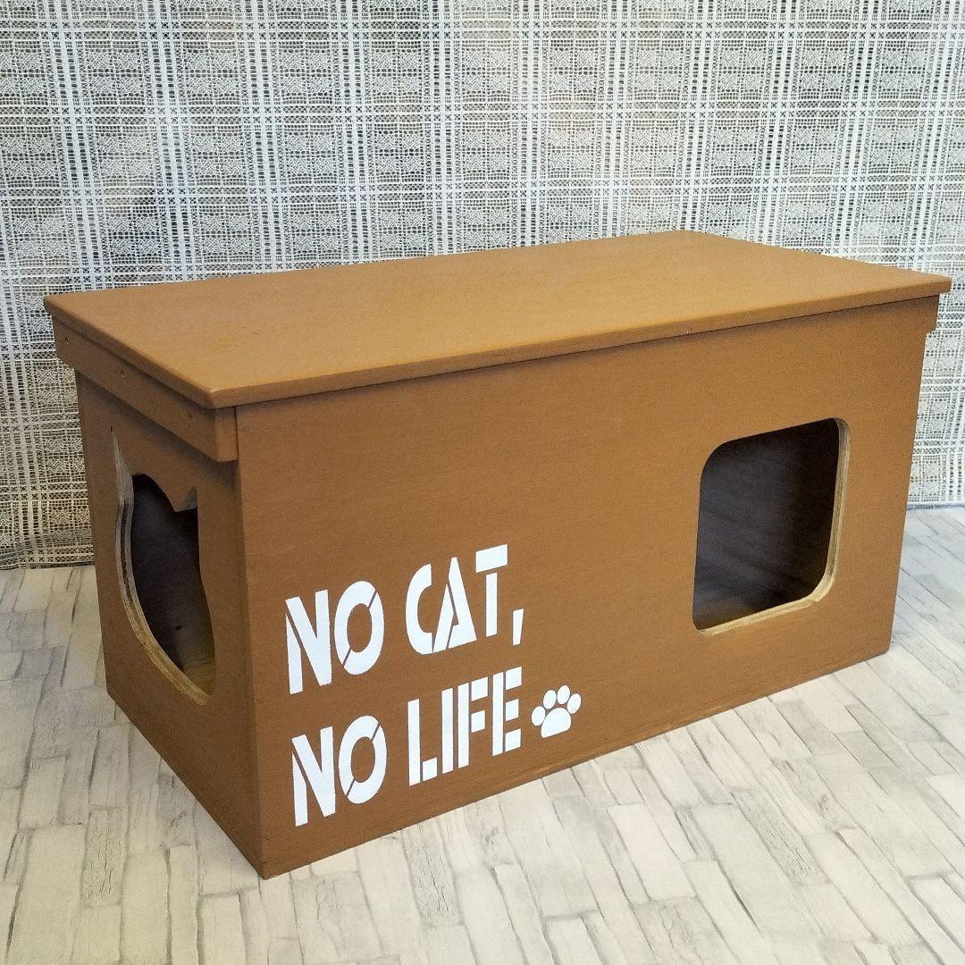 1枚板を加工して丈夫で便利なキャットハウスにしました。